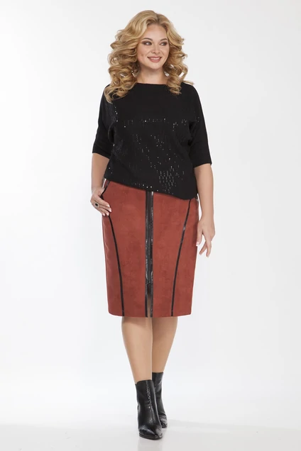 Юбка женская, прилегающего силуэта на подкладке. Верхний срез юбки на обтачке. Застежка по центрупереднего полотнища на разъемной декоративной молнии. По отрезным бочкам-карманам,рельефам и у края молнии настрочена тесьма "лаке".Спинка с вытачками талиевыми,средним швом и разрезом.Длина юбки 63,5см. Реальные замеры 54 от-100см, об-120см, 56 от-104см, об-124см, 58 от-108см, об-128см.
