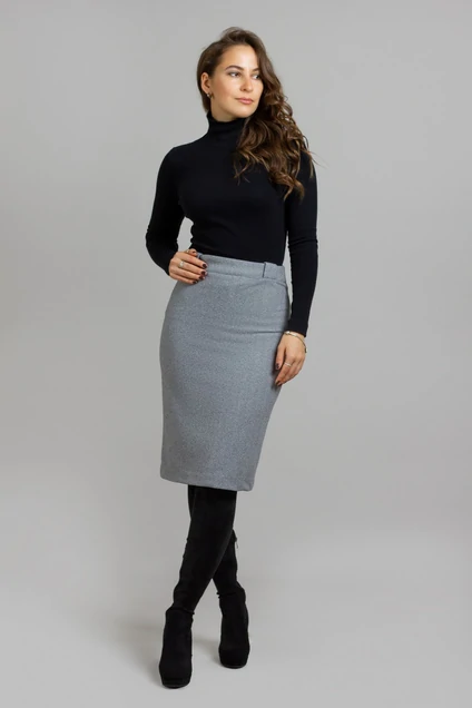 Классическая Юбка-карандаш полуприлегающего силуэта зимнего ассортимента . Заднее полотнище со средним швом с застежкой на потайную молнию, заканчивающимся шлицей. Юбка на подкладке.