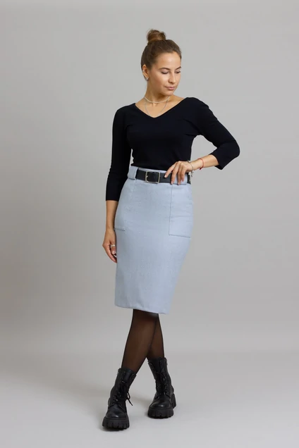 Классическая Юбка-карандаш полуприлегающего силуэта осенне-зимнего ассортимента c накладными карманами по переду. Заднее полотнище со средним швом с застежкой на потайную молнию, заканчивающимся шлицей. Юбка на подкладке.Подкладка: Вискоза 55% ПЭ 45%