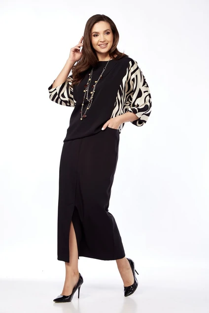 Юбка прямого силуэта, длиной миди, из текстильного материала.