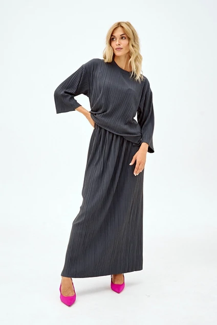 Элегантная юбка макси на резинке, драпирующаяся, расширенного силуэта. В бёдрах свободная. Изделие без подкладки.