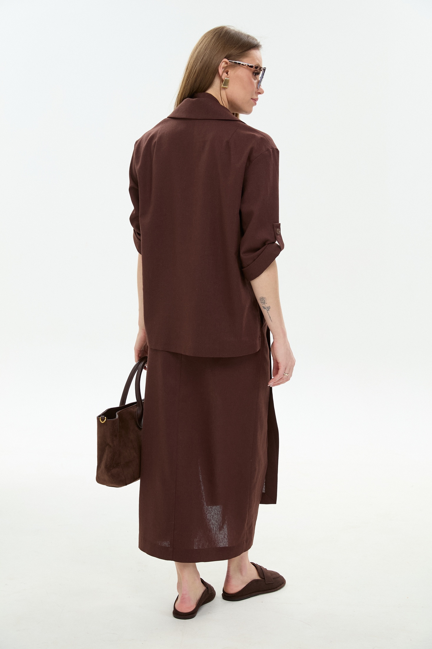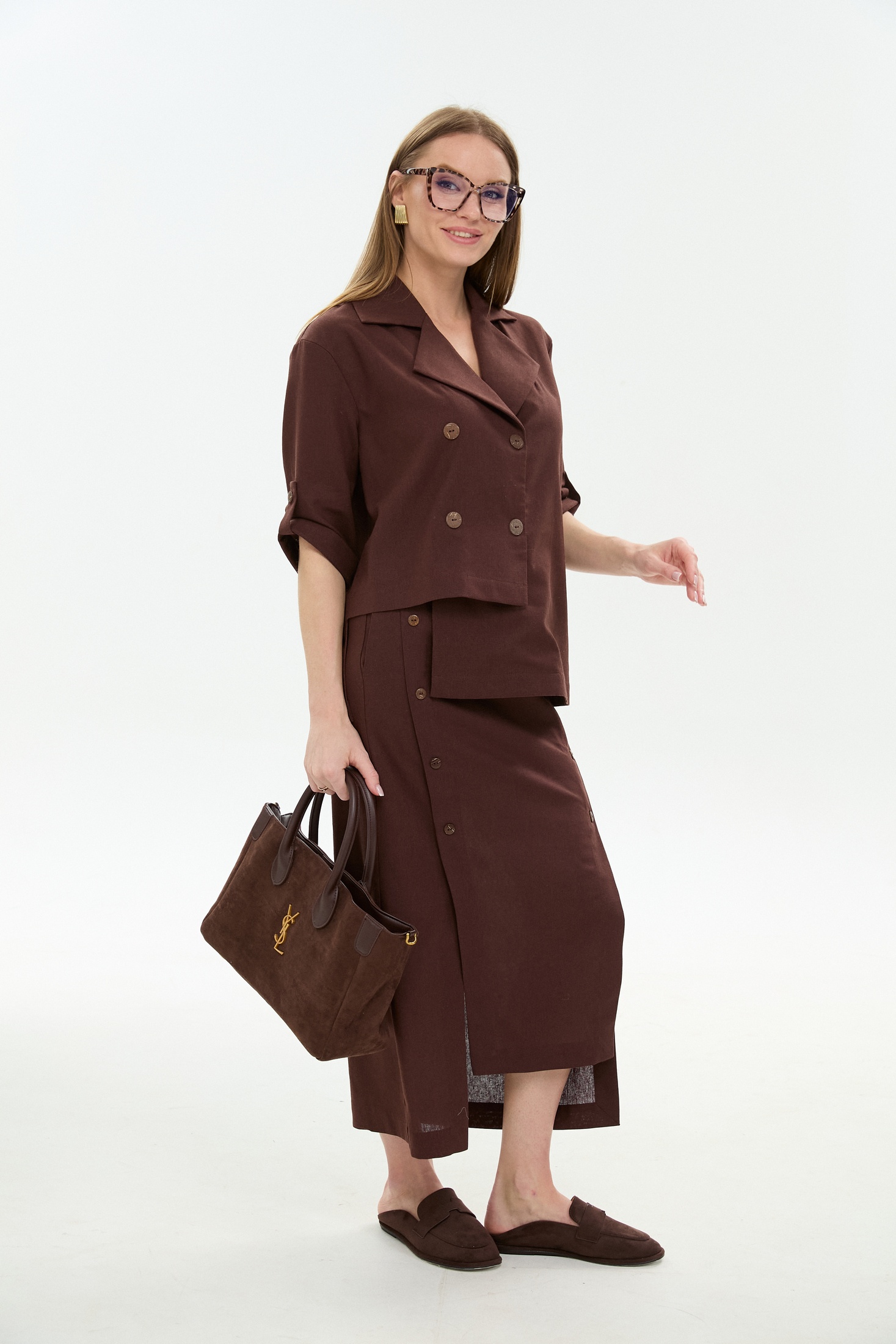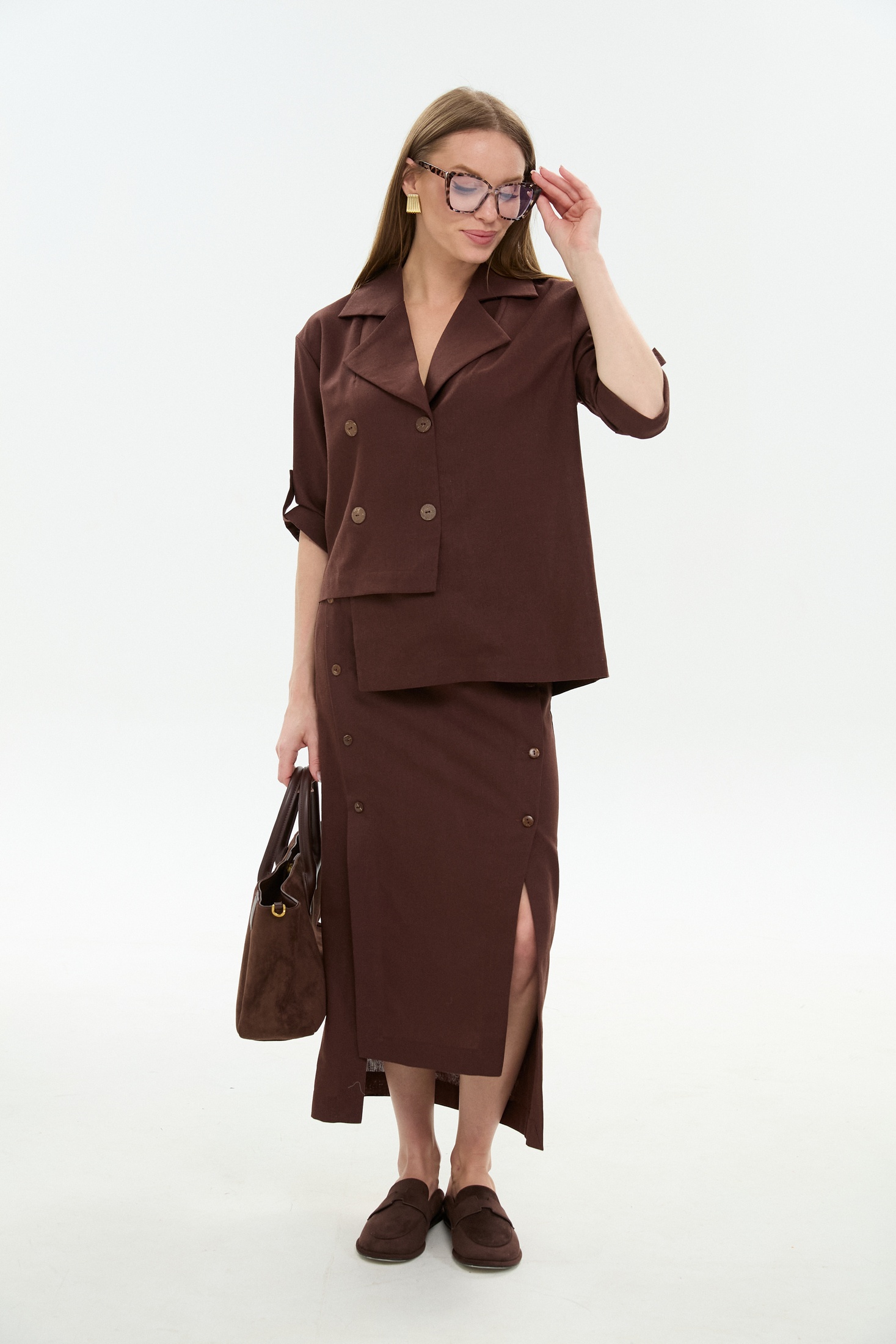Юбка 971-6 шоколад NikVa станет отличным выбором для летнего гардероба. Коллекция бренда NikVa предлагает миди-юбку расклешенного фасона с асимметричным низом, выполненную из комбинации льна, вискозы и хлопка. Благодаря притачному поясу и резинке на спинке, изделие комфортно сидит на фигуре. Передняя часть включает декоративную строчку и кнопки, а боковые карманы добавляют практичности. Шоколадный цвет юбки отлично подойдет для повседневных и офисных образов. Средний шов и вытачки на спинке обеспечивают идеальную посадку.