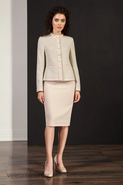 Женская юбка-карандаш из костюмной ткани длиной ниже колена. Верхний край юбки на обтачке, по низу притачная декоративная планка. Застёжка на потайную молнию. Юбка на подкладке.