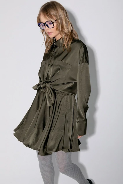 Мини-юбка из атласной ткани с крэш-эффектом.