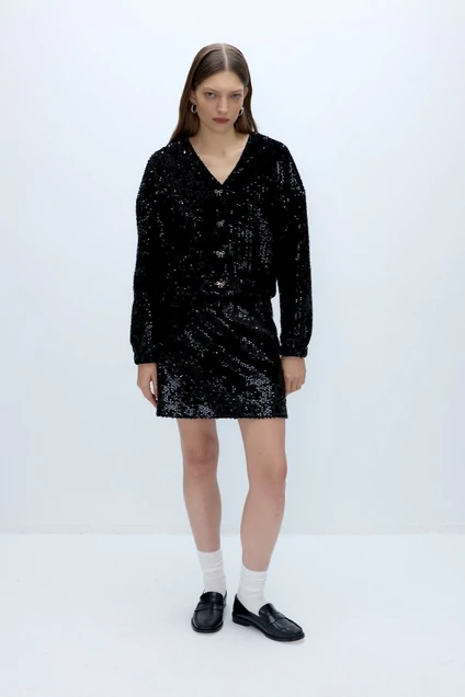 Мини-юбка из велюровой ткани в пайетки.