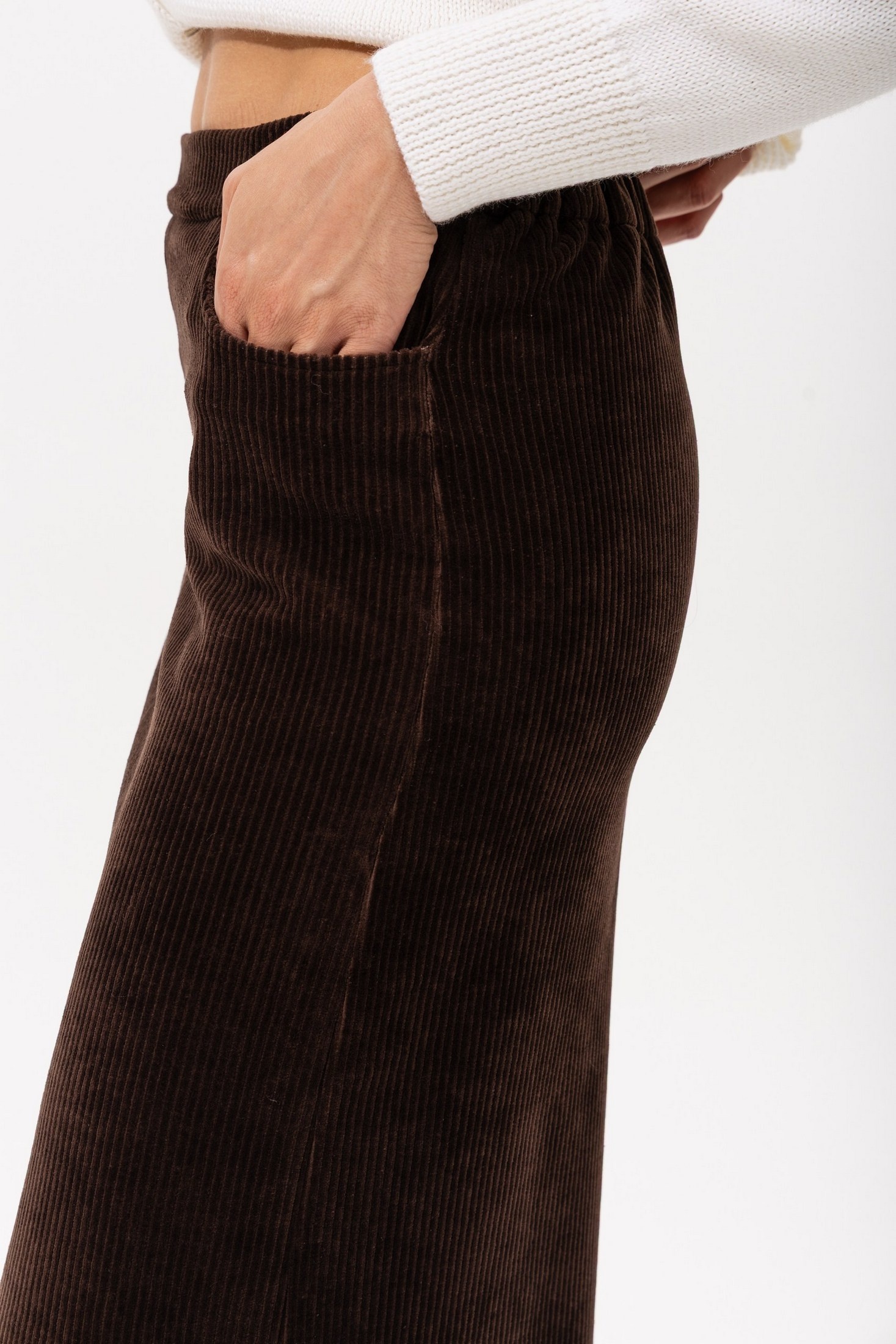 Посадка: Высокая талия с застёжкой на пуговицу и поясом, что позволяет подогнать юбку по фигуре.