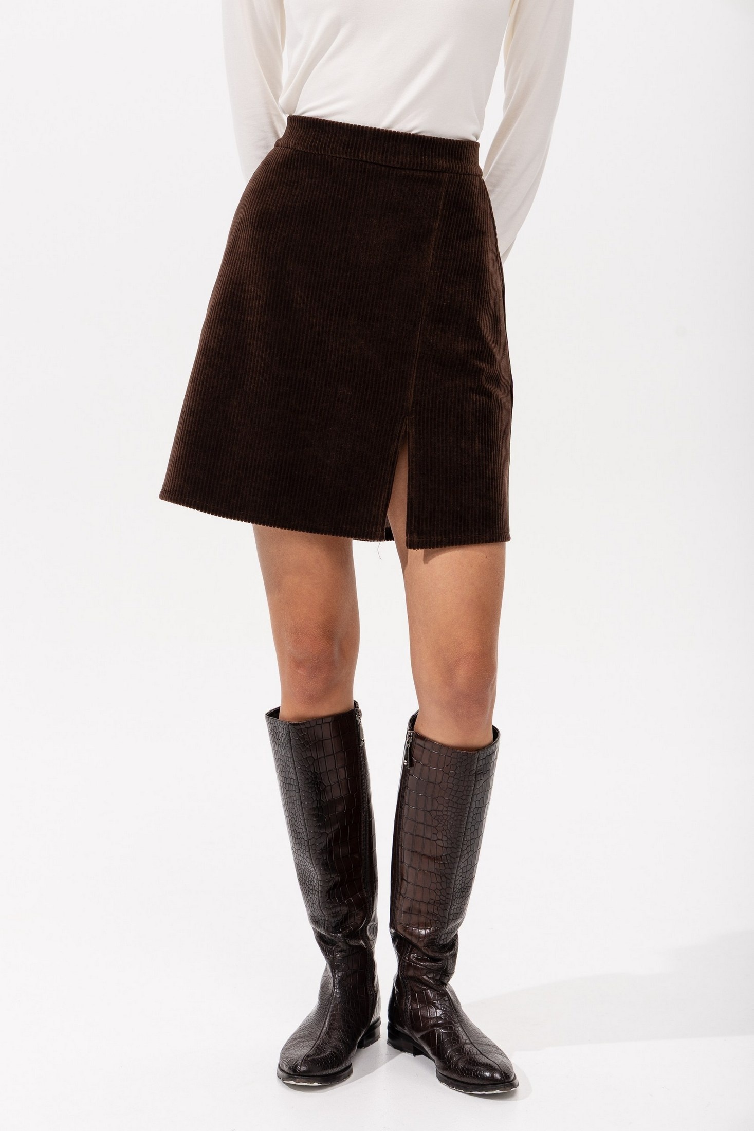 Эта стильная шоколадная юбка-обманка станет настоящей находкой для вашего гардероба! Изготовленная из плотного корда, она подчеркнёт вашу индивидуальность и добавит образу нотки элегантности и современности.