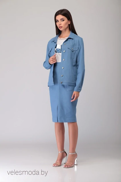 Переднее полотнище с вытачками, средним швом и разрезом к низу изделия. По переднему полотнищу накладные карманы с клапанами. На кармане декоративная складка.