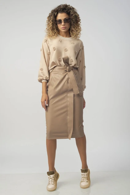 Юбка из экокожи прямая. Ассиметричная застежка на длинную молнию с планкой. Пояс со шлевками. Юбка на подкладке. Юбка с завышенной талией. На фото представлен джемпер мод. 7290-1.