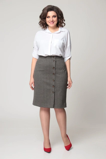 Подкладка: 100%вискоза Юбка полуприлегающего силуэта на подкладке. Выполнена из мягкого трикотажного полотна. Юбка со смещенной застежкой на петли и декоративные пуговицы. Верх юбки обработан притачным поясом. По переднему и заднему полотнищу юбки расположены талиевые вытачки.