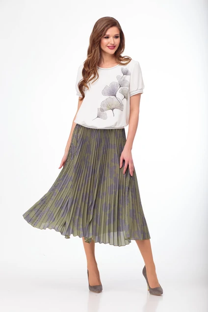 Универсальная юбка-плиссе из крепа длиной миди. На талии широкая декоративная резинка.