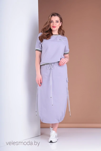 Юбка в спортивном стиле из трикотажного полотна с хлопком, со швами по переду и спинке, на поясе, собранном на резинку и шнуром. В боковых частях расположены функциональные карманы, низ собран на резинку. Срезы пояса, карманов и шнуров открытые.