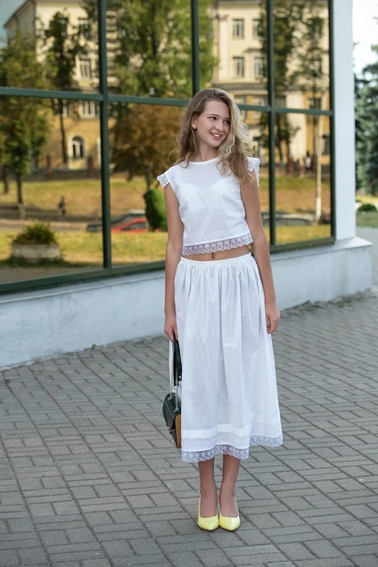 Юбка в сборочку,длина миди.По низу изделия кружево Молния по спинке