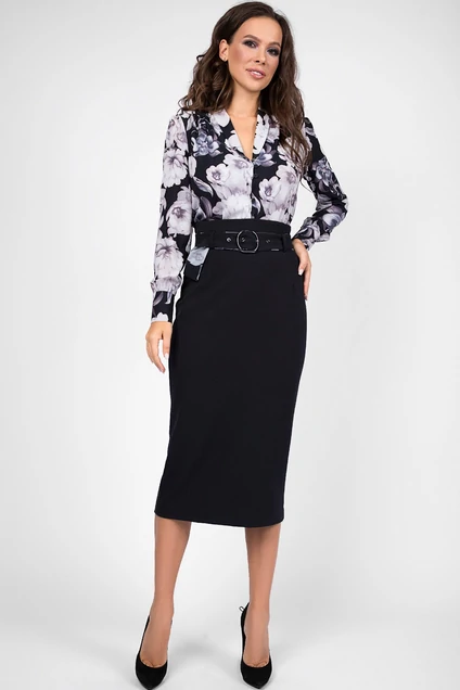 Юбка 1340-1 черный+графитовые цветы TEFFI Style
