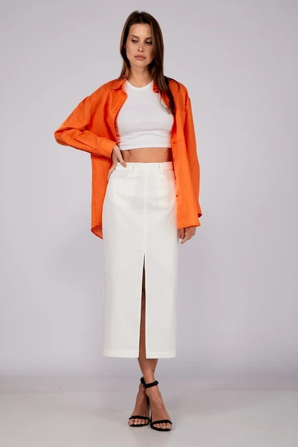 Женственная, элегантная, игривая и эффектная юбка с разрезом уже несколько сезонов является важной частью гардероба. Модели с разрезом спереди стали отличным компаньоном в повседневных, деловых и официальных образах.Благодаря разрезу, который делает эту юбку эффектной, вы можете носить ее как в повседневных нарядах с классической футболкой или свитером, так и в элегантном вечернем образе с модным топом. Юбка на притачном поясе со шлевками, по переду карманы, сзади застежка на потайную молнию и декоративную петлю-пуговицу, по переду высокий разрез..Длина 86см, полуобхват талии в 42-м размере 34 см, полуобхват бедер в 42-м размере 44 см , высота разреза 46 см от линии низа.Юбка на легкой подкладке