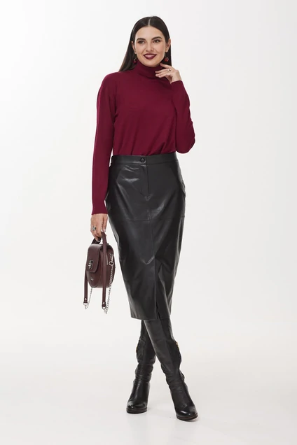 Юбка-карандаш изготовлена ​​из качественной эко-кожи на хлопковой основе, длиной миди.