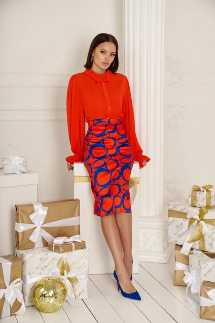 среднем шве спинки обработана шлица.Длина юбки за колено. Изделие на подкладке.