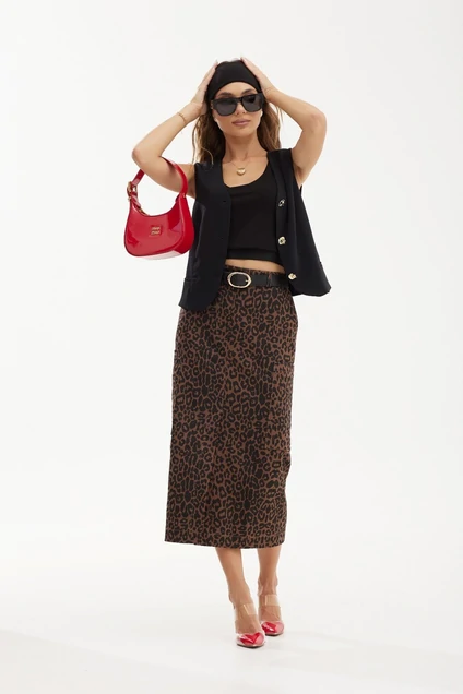 Юбка прямая из джинсовой ткани. Длина миди. Верх на поясе со шлевками. Застежка по переду на молнию и кнопку на поясе. В боковых швах карманы. По низу переда юбки шлица. На боковых швах накладные карманы. В