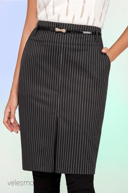 Элегантнтная юбка -карандаш из поливискозной костюмной ткани, зауженная к низу, длиной за колено. Юбка на притачной широкой кокетке. По переду расположены карманы-хулиганы и встречная складка. Застежка юбки на тесьму молния находящуюся в среднем шве заднего полотнища юбки.