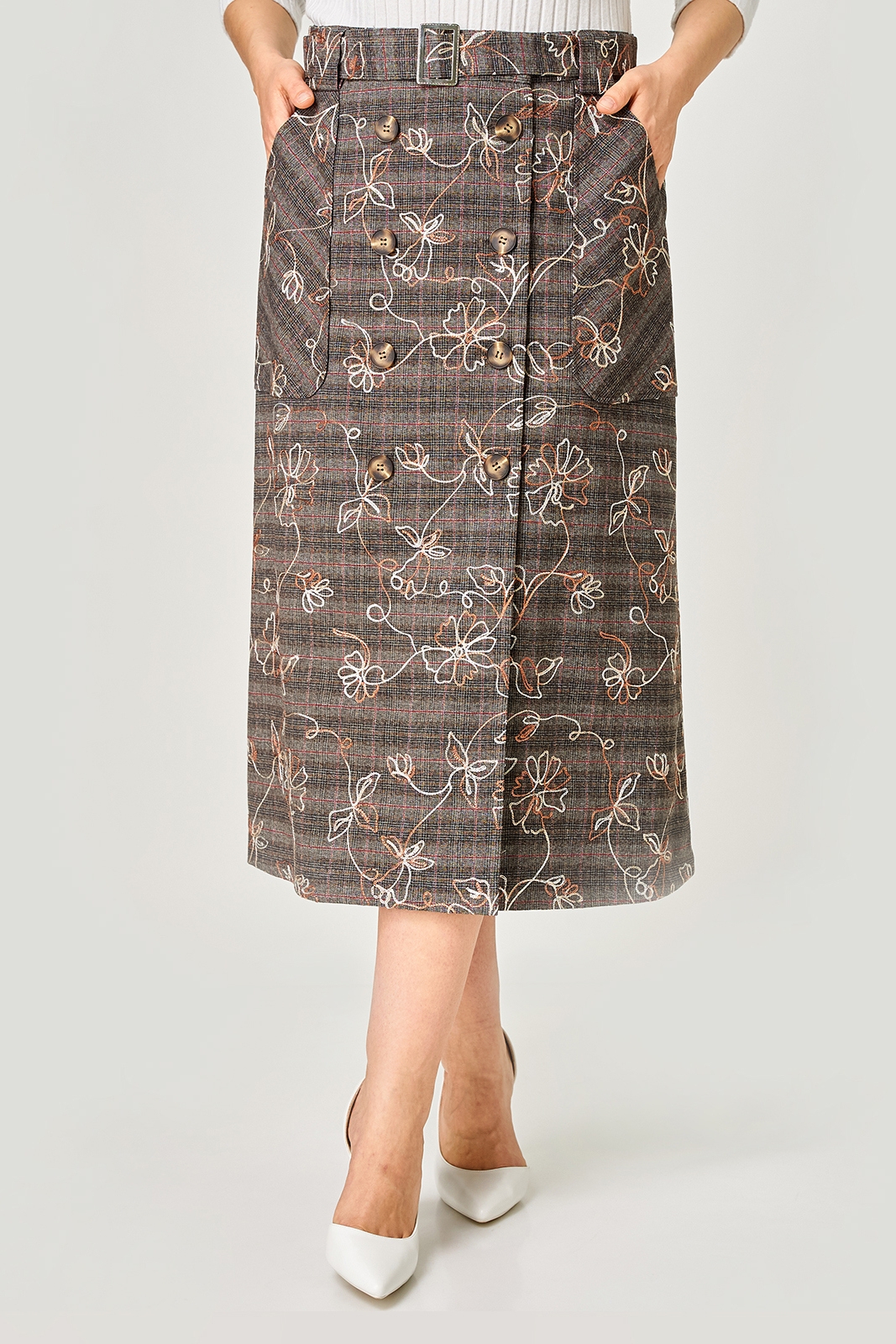 Юбка 4467 коричневый ZLATA впечатляет элегантностью и утонченностью. Коллекция бренда ZLATA предлагает новое осенне-зимнее решение для модниц. Юбка изготовлена из 65% вискозы и 35% полиэстера, что обеспечивает комфорт и долговечность. Клетчатый узор с вышивкой добавляет изюминку, а спереди расположены декоративные пуговицы. Длина миди и свободный фасон делают юбку идеальной для повседневной носки, офиса или прогулки. Коричневый цвет и комфортная подкладка из 100% полиэстера обеспечивают теплую и стильную осенне-зимнюю одежду. Сочетайте юбку с различными верхами для создания уникальных образов.