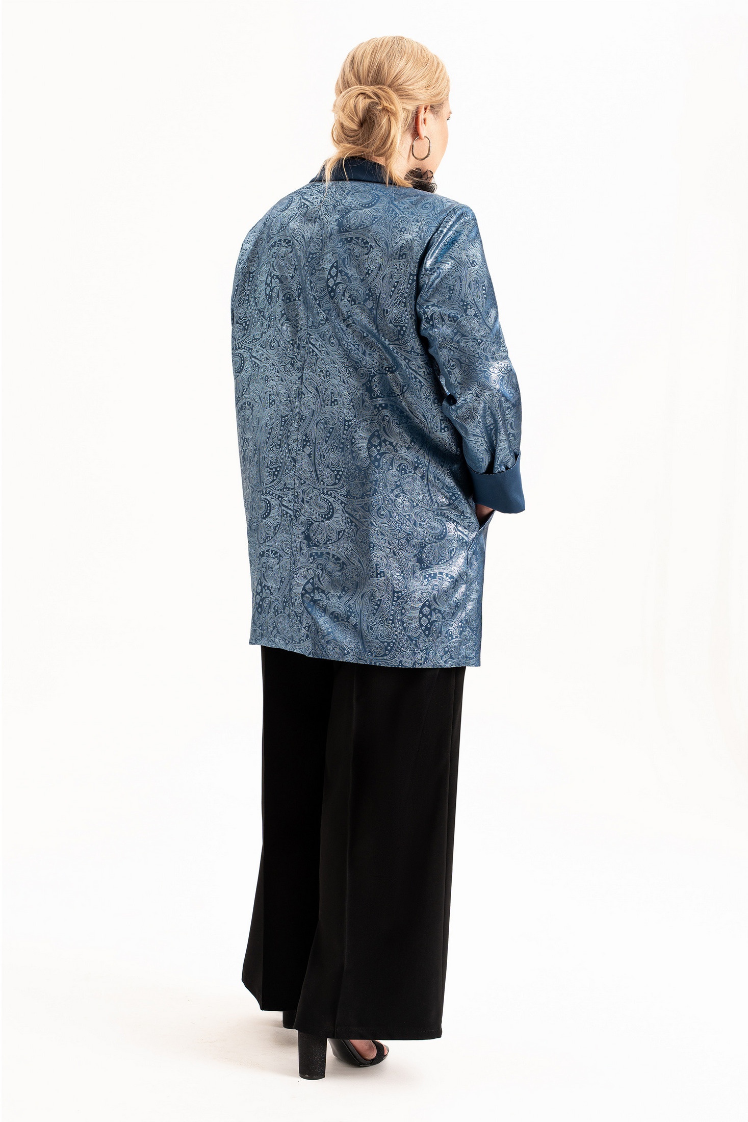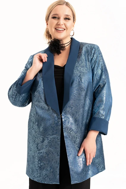Этот женский нарядный жакет представлен в ярких тонах. Благодаря своему прямому, слегка приталенному силуэту, жакет обеспечивает максимальный комфорт и удобство при ношении. Вам не придется беспокоиться о чувстве стеснения или дискомфорта, так как он идеально подстраивается под вашу фигуру. Этот нарядный пиджак гарантированно привлечет внимание и подчеркнет вашу индивидуальность. Он доступен в больших размерах и подходит для женщин с разными типами фигуры. Вы сможете выглядеть модно и элегантно независимо от своего размера. На жакете обработан воротник шалька и карманы в фигурных рельефах. Жакет на подкладке с длинным рукавом. Застежка на декоративный крючок. Длина изделия (см): 80 Длина рукава (см): 62