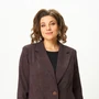 Жакет прямого силуэта, выполнен из однотонной ткани, жакет на подкладке. Полочка жакета с центральной застежкой на петлю пуговицу. Полочка с вертикальными рельефами и прорезными карманами с клапанами. Горловина V-образной формы с отложными лацканами и воротником пиджачного типа. Спинка со средним швом и вертикальными рельефами. Рукав втачной, двухшовный. Жакет на плечиках.