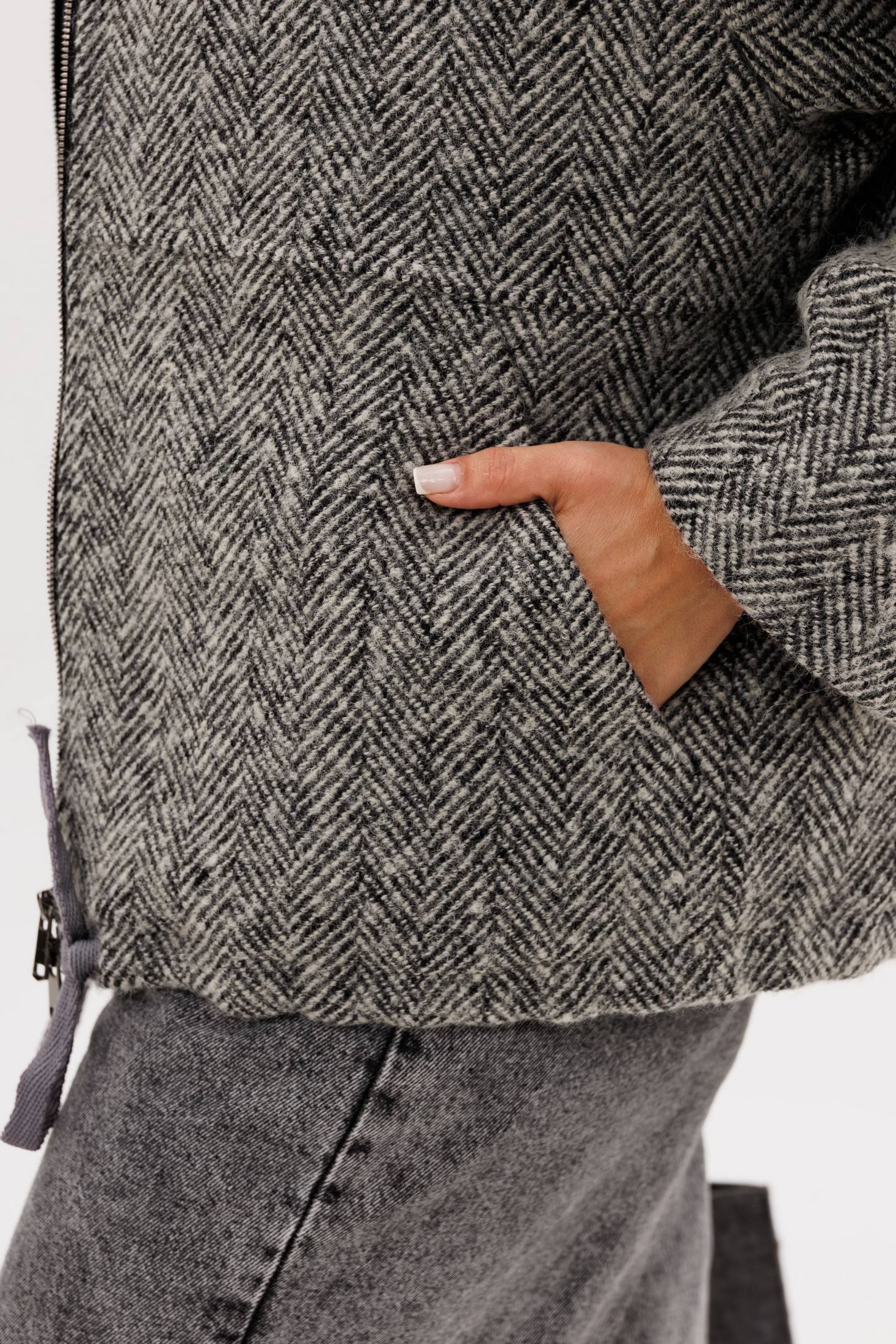 Этот жакет — идеальный спутник для переменчивой погоды межсезонья. Его прямой силуэт со спущенной линией плеч создает современный и утонченный образ, полный непринужденной элегантности. Модель выполнена на уютной подкладке, которая обеспечивает комфорт, но без утеплителя, что делает ее идеальной для теплой осени и прохладной весны.
