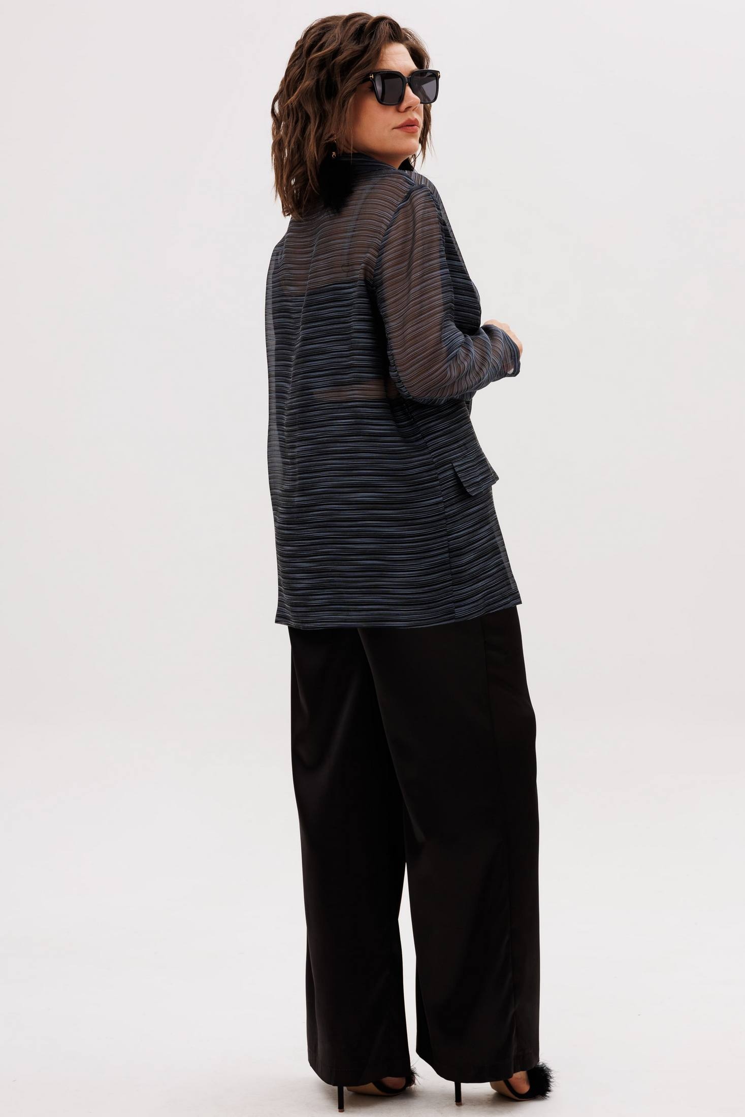 Невесомый и прекрасный, он привносит ощущение праздника в любой образ, сохраняя при этом благородную сдержанность благодаря строгому цвету. Этот жакет от Анелли создан для того, чтобы быть наброшенным на платье, тонкие блузы или топы, раскрывая их красоту и добавляя образу объема и изящества. Для более четкого силуэта его можно стилизовать с поясом, подчеркивая талию.