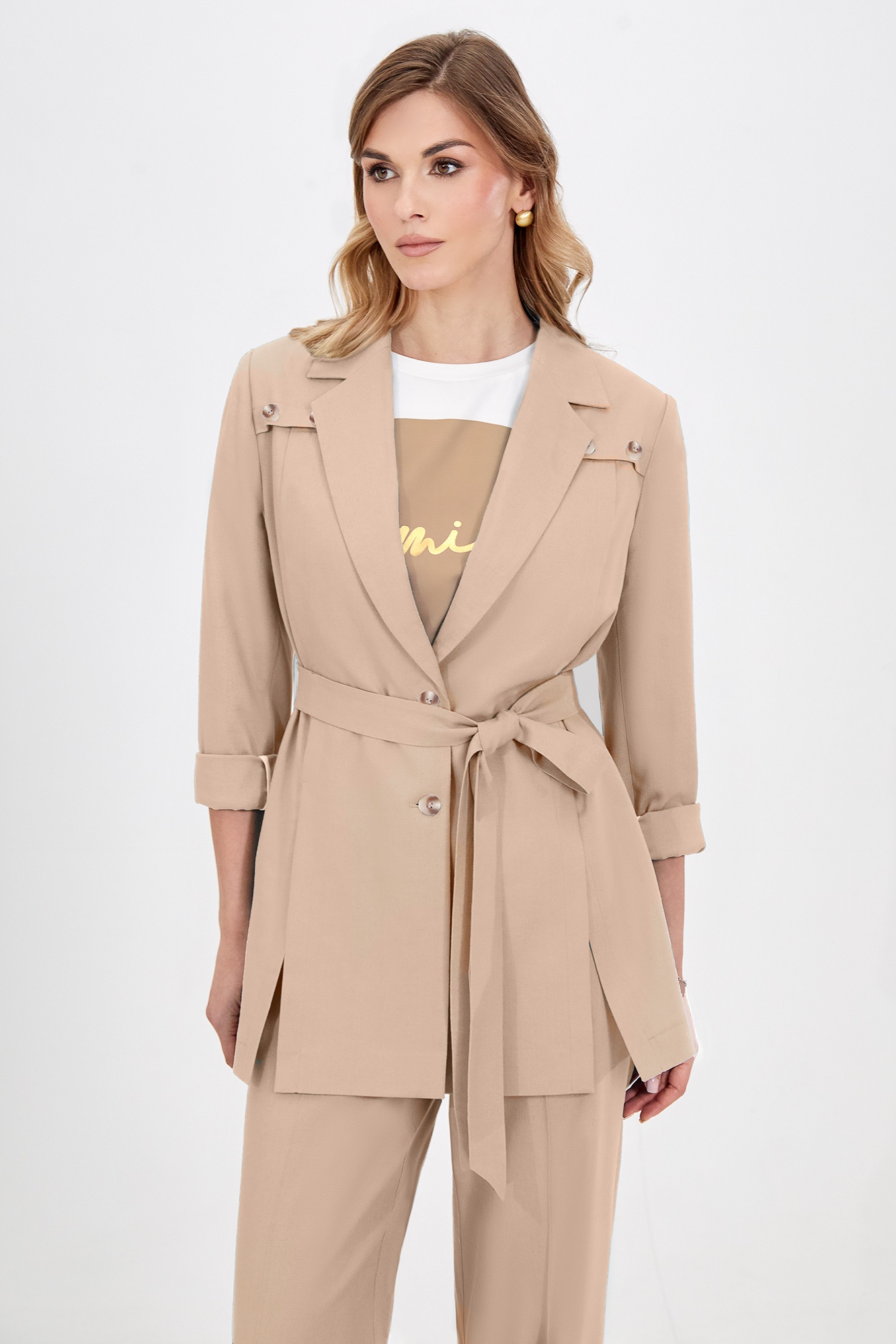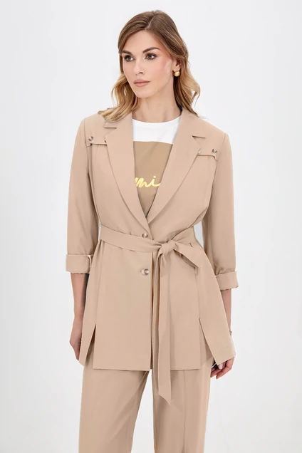 Жакет 5027 бежевый Bazalini — это воплощение стиля и комфорта для любой современной женщины. Коллекция бренда Bazalini включает изделия из комбинации вискозы, льна и хлопка, что обеспечивает легкость и дышащие свойства в теплую погоду. Прямой крой и застёжка на двух пуговицах подчеркивают классический стиль, а штрипки и декоративные пуговицы добавляют индивидуальность. Выполненный в нейтральном бежевом цвете, жакет идеально подходит для повседневного и офисного гардероба. Подойдёт для весенне-летнего сезона, его можно носить как с поясом для акцента на талии, так и в свободном стиле, придавая образу непринужденность. Втачные двухшовные рукава и детали со шлицами обеспечивают дополнительный комфорт и свободу движений.