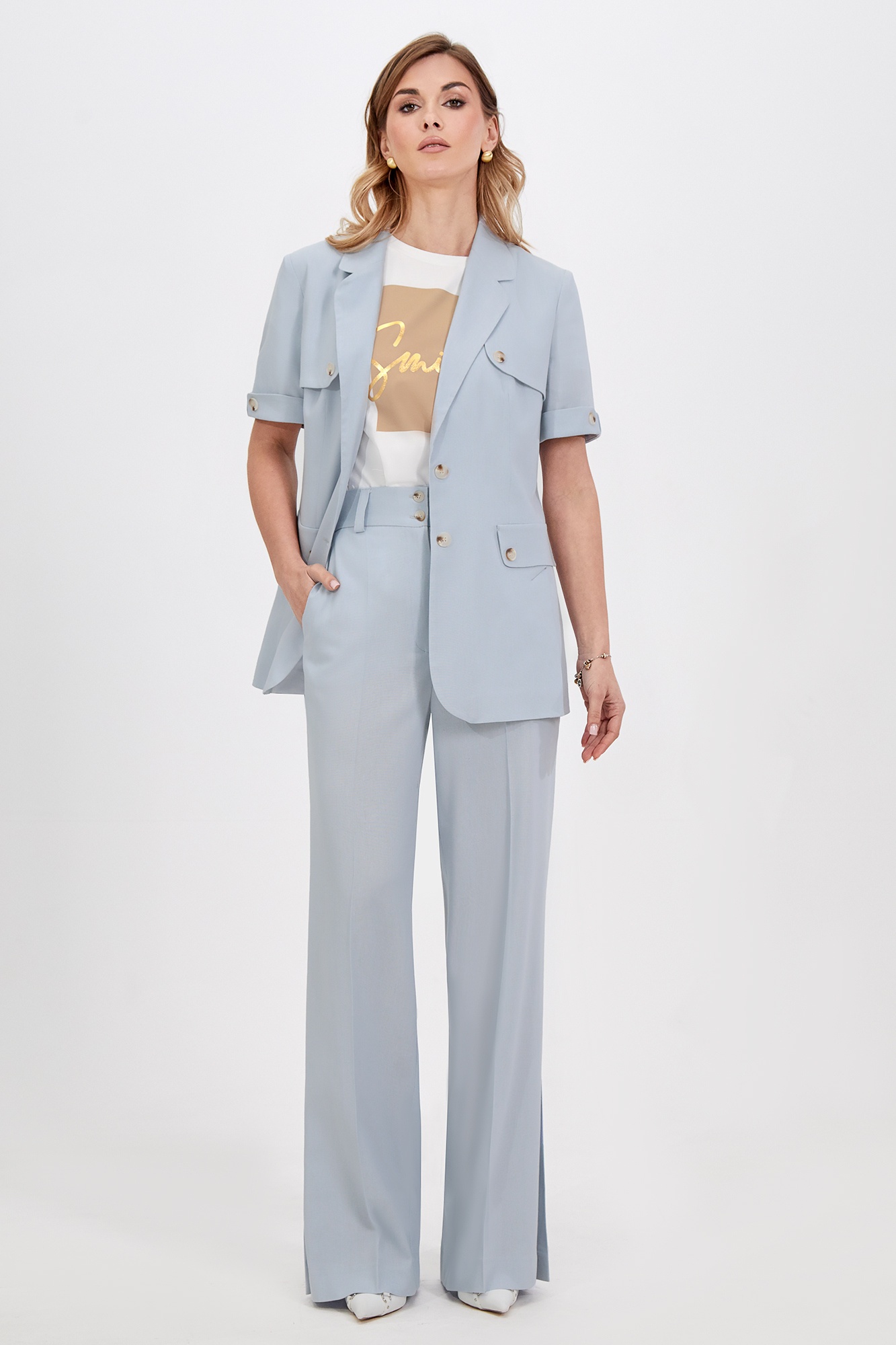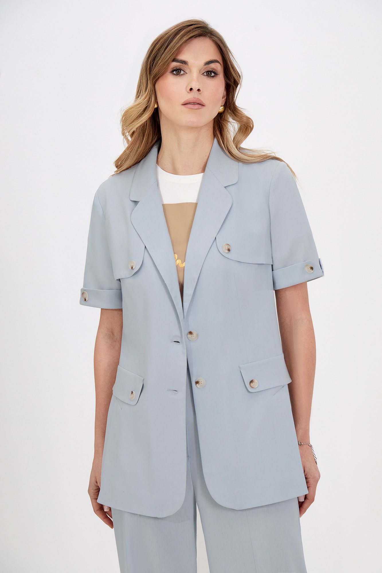 Жакет 5037 голубой Bazalini — это идеальный выбор для тех, кто ценит стиль и комфорт. Коллекция бренда Bazalini предлагает модные решения для повседневного и офисного гардероба. Жакет выполнен из смесового материала на основе льна, который сочетается с мягкой хлопковой подкладкой, обеспечивая удобство ношения. Короткие рукава с фигурными манжетами и застёжка на петли-пуговицы придают изделию утончённость. Голубой цвет и шлицы по переду и спинке добавляют лёгкости и свежести образу. Идеально подходит для весенне-летнего сезона и может быть скомбинирован с широкими брюками из той же линейки.