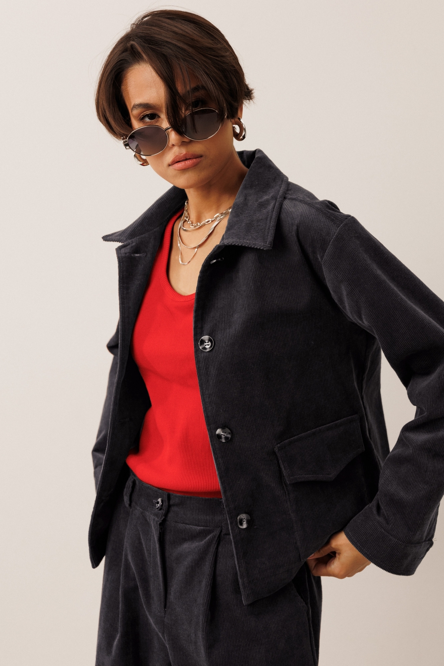 Современный жакет из хлопкового вельвета от GO составит беспроигрышную комбинацию с вашими платьями, юбками и брюками.