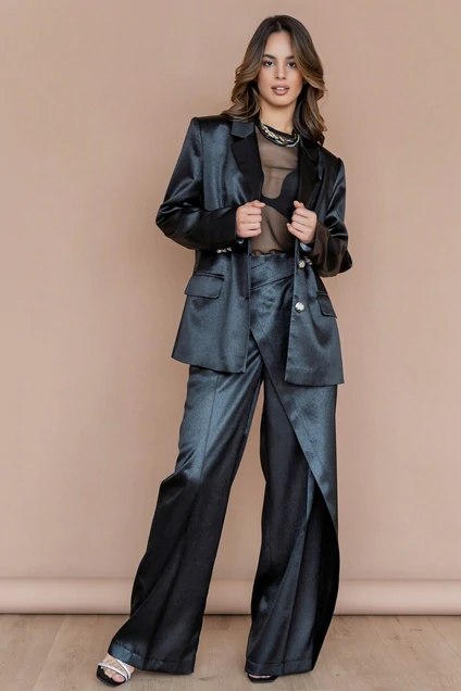 Жакет женский свободного кроя — идеальный выбор для создания стильного образа. Лёгкий блеск ткани и красивые пуговицы придают ему изысканность, а карманы с клапанами обеспечивают практичность. Поливискозная контрастная подкладка гарантирует комфорт и долговечность изделия. Не упустите возможность обновить свой гардероб этим элегантным жакетом!