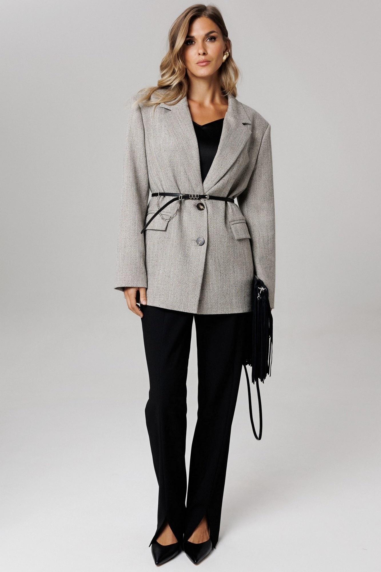 Жакет вы можете дополнить топом L-037 (на фото). Наш модный жакет составит стильный образ как для офиса, так и для вечеринки с друзьями.