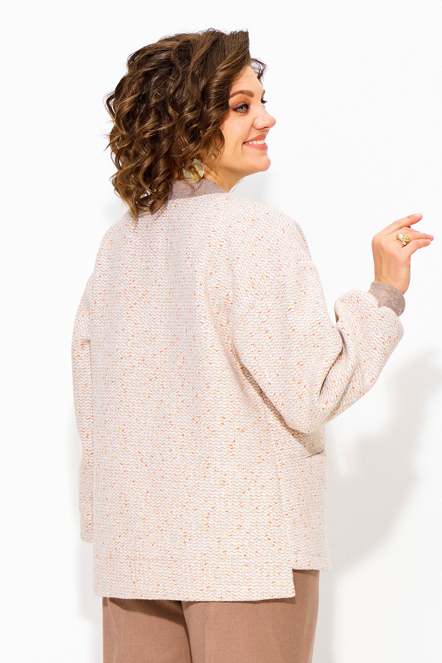 Женский твидовый жакет, по типу бомбера – стильная женская одежда на каждый день, которая станет отличным дополнением повседневного гардероба. Модель свободного силуэта, со спущенной линией плеча. Рукав длинный, с притачными манжетами по низу. Застежка центральная, на металлическую тесьму-молнию. Горловина обработана трикотажной планкой по типу – бомбера. Низ по полочке фигурный, по спинке удлинен. По полочке расположены рабочие карманы в шве! Свободная оверсайз модель подходит практически под любую фигуру. Модель на шёлковой подкладке! Длина по спинке – 70 см, рукав – 62 см.