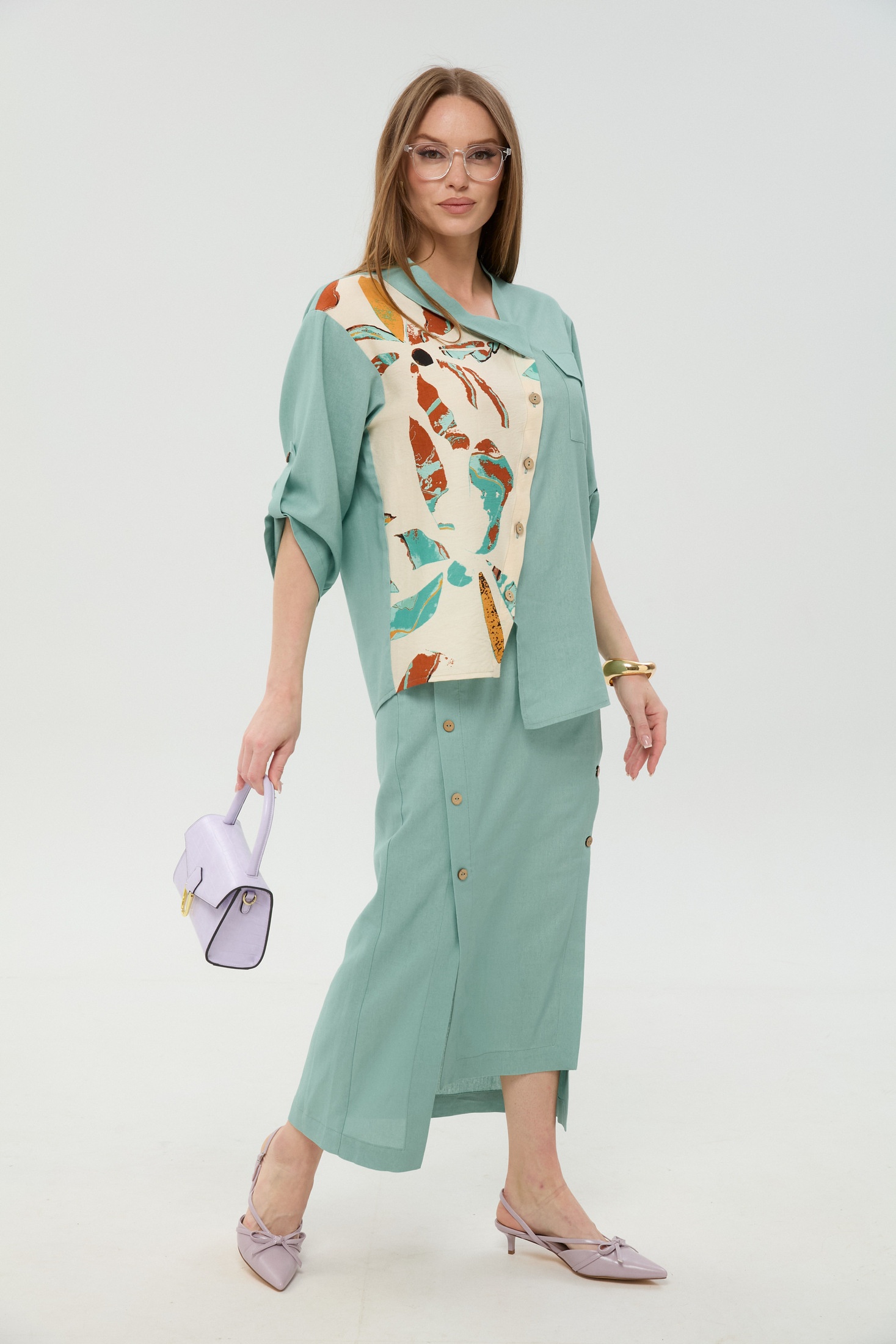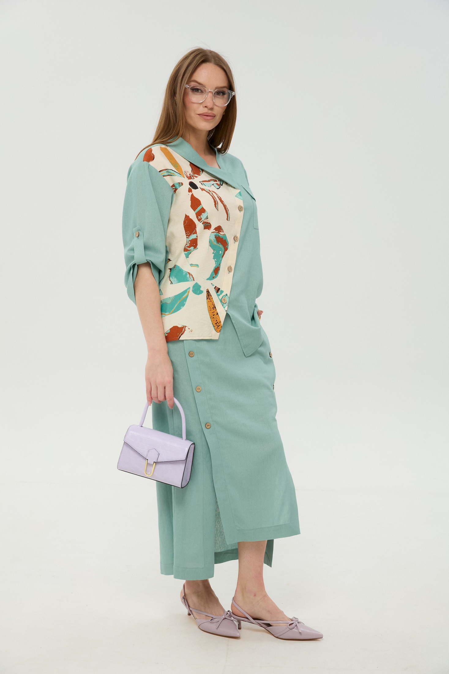 Жакет 902-17 мята и бохо мультиколор NikVa — это стильное решение для современной женщины. Коллекция бренда NikVa предлагает универсальный жакет рубашечного типа прямого силуэта с асимметричным низом. Изделие выполнено из смеси льна, вискозы и хлопка, обеспечивая комфорт и дышащие свойства, идеальные для теплого времени года. Втачной рукав со спущенной линией плеча и возможность фиксации на пату добавляют функциональности и легкости образу. Яркие мультимедийные детали, включая центральную застежку на петли и пуговицы, придают жакету уникальный характер. Благодаря отложному воротнику на стойке и асимметричному дизайну, этот жакет прекрасно подойдет как для повседневного, так и для офисного гардероба. Стильный выбор для весны и лета, представленный в нежном мятном оттенке с яркими акцентами, подчеркивает вашу индивидуальность.
