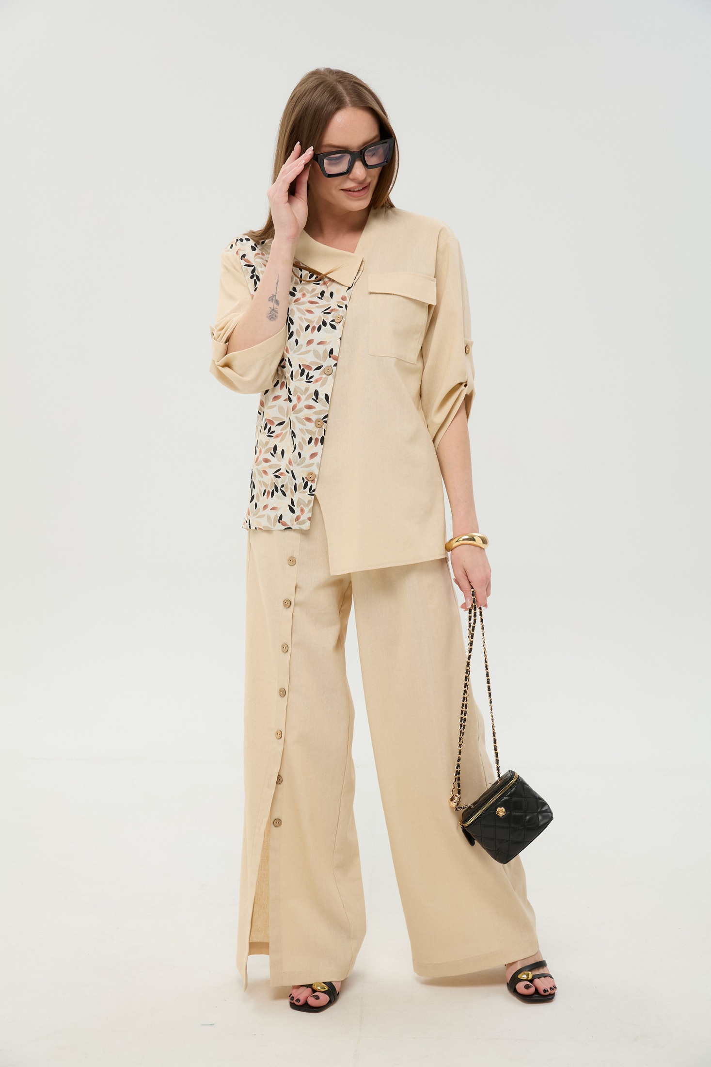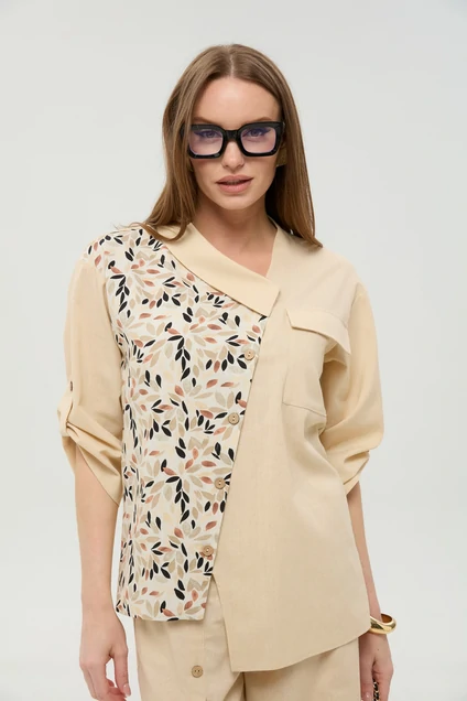 Жакет 902-18 песок и песочный мультиколор NikVa привнесет свежий штрих в ваш гардероб. Коллекция бренда NikVa предлагает изделие из смеси льна, вискозы и хлопка, что обеспечивает комфорт и долговечность. Жакет рубашечного типа имеет прямой силуэт с асимметричным низом, что добавляет динамичности образу. Спущенная линия плеча и укороченные рукава, которые фиксируются на пату, делают дизайн практичным и стильным. Застежка на косой с пуговицами подчеркивает современный подход к классике. Этот жакет идеально подходит для повседневного стиля, благодаря легкому материалу отлично подходит для весны и лета. Песочные и мультиколорные оттенки создают утонченный и свежий вид.