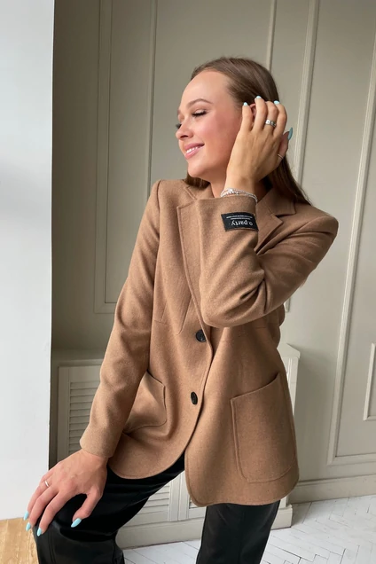 Жакет прямого силуэта, на хлопковой подкладке. Материал легкий. Жакет застегивается на пуговицы спереди. Длина 72 см. Рукав 61 см. Ткань неплотная, мягкая на ощупь. Карманы функционирующие. ЦВЕТ ПОЛНОСТЬЮ НЕ ПЕРЕДАЕТСЯ НА ФОТО! ЦВЕТ НЕМНОГО ТЕМНЕЕ, ЗАПРАШИВАЙТЕ ФОТО ВЖИВУЮ У СВОЕГО МЕНЕДЖЕРА