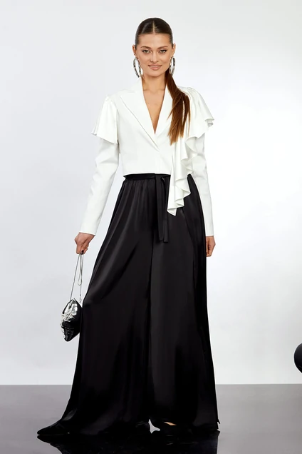 - воланы из шелка Армани со сборкой в рельефе левого и пройме правого рукавов