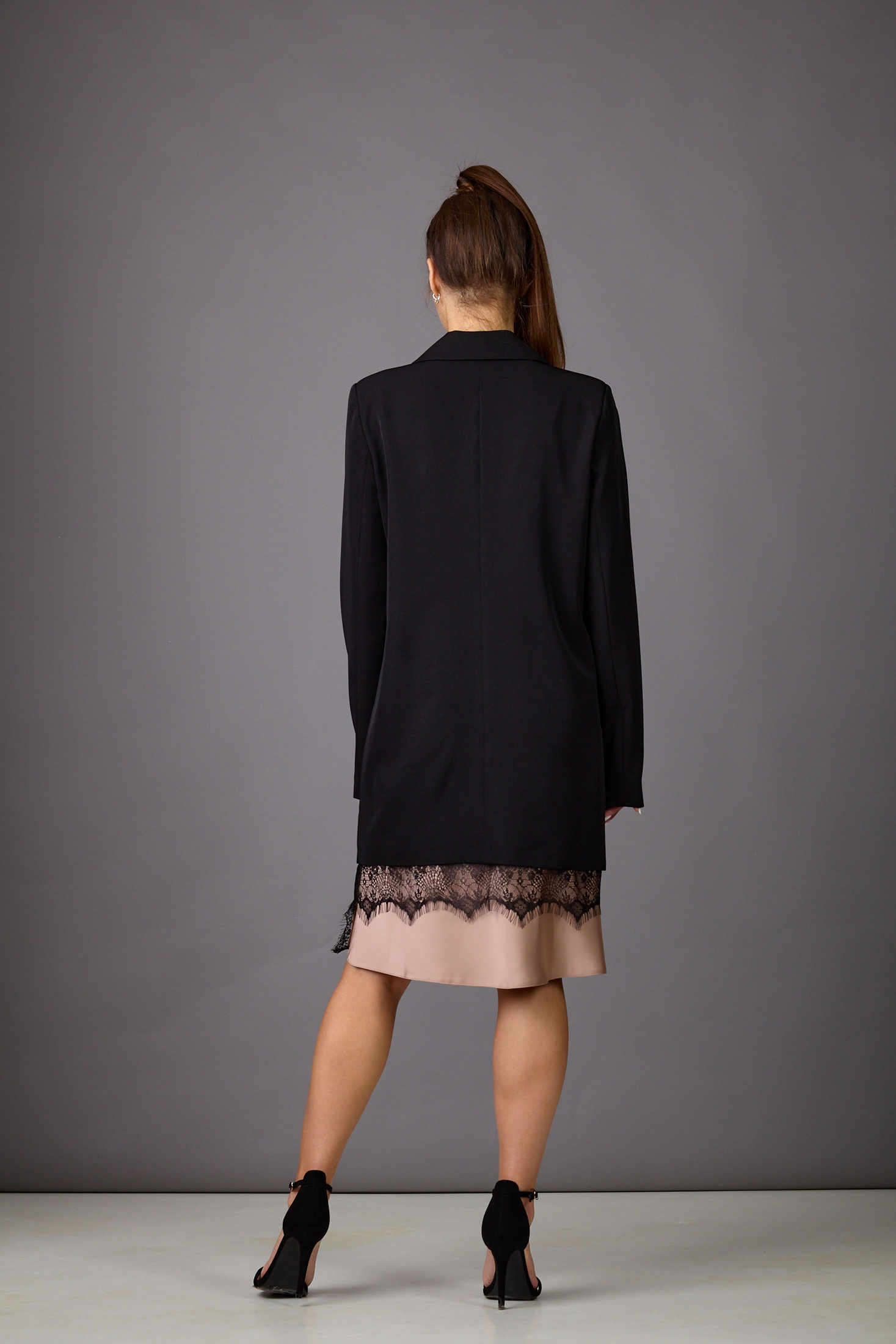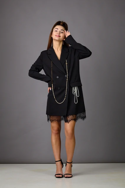 Представляем жакет женский из костюмной ткани на подкладке,который станет незаменимым спутником в вашей жизни. Лаконичный прямой силуэт жакета с двубортной застежкой прекрасно сочетается с нежным кружевом шантильи по низу. По переду- прорезные карманы с клапанами. В левом кармане брошь, имитирующая горсть жемчуга, выпадающего из кармана. Брошь сьемная, входит в комплект с жакетом. Воротник-с отложными лацканами пиджачного типа. Рукава двухшовные, длинные. Жакет можно носить, как самостоятельно, так и в сочетании с платьями- комбинациями, юбками, брюками. Длина жакета 44-48р - 82см +5см кружево, 50-54р- 84см+5см кружево
