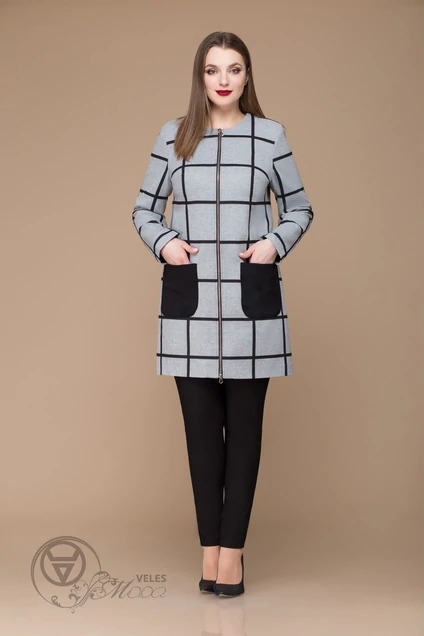 Жакет полуприлегающего силуэта с центральной застежкой на тесьме-молнии, круглым вырезом горловины и накладными карманами из отделочной ткани. Жакет на подкладке. Длина изделия по спинке: 86 см Длина рукава: 62 см