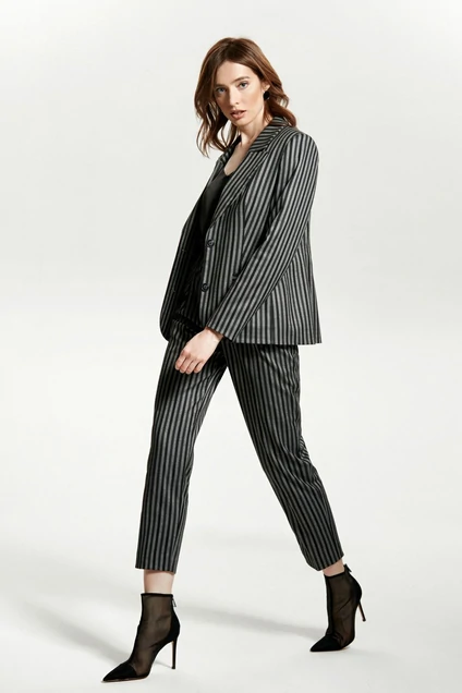 Пиджак женский, из поливискозы , в актуальную в этом сезоне рисунок плоску и однотонный глубокий черный.Женский пиджак представляет собой важнейшую и неотъемлемую составляющую женского гардероба. С его помощью можно создать, как деловой образ, так и комплект на каждый день. Даже один и тот же жакет может смотреться совершенно по-другому в сочетании с разными вещами. Для работы прекрасно подойдет комплект из классических брюк и стильной обуви на каблуке. А вот для расслабленной прогулки лучше подобрать футболку, джинсы и балетки. Эти оба варианта можно дополнить одним и тем же пиджаком.
