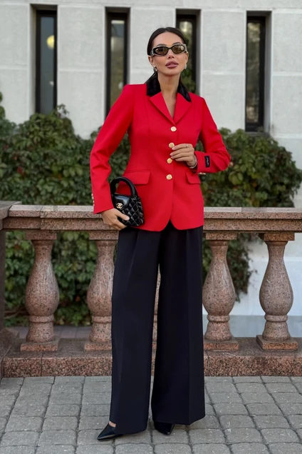 Женский красный жакет URS — воплощение элегантности и силы, классический элемент современного гардероба, который объединяет комфорт, женственность и уверенный деловой стиль. Этот приталенный жакет женский выполнен с идеальной посадкой по фигуре, подчеркивает линию талии и визуально вытягивает силуэт, создавая гармоничный и утончённый образ.