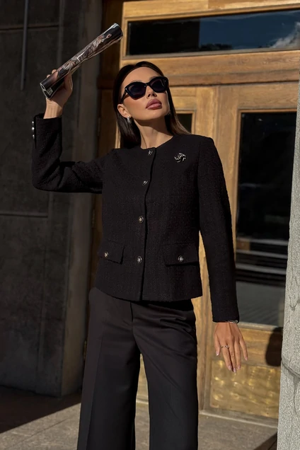 Элегантный твидовый жакет — это универсальная модель, созданная для женщин, которые ценят стиль, качество и комфорт. Классический силуэт, декоративные пуговицы и качественная ткань делают этот жакет актуальным как для офиса, так и для повседневных или вечерних образов.Жакет женский прямого силуэта, выполнен из твидовой ткани, на подкладке, со съемной декоративной брошью, с центральной бортовой застежкой на 4 петли и пуговицы (размер и цвет фурнитуры может незначительно отличаться от фото). Жакет может быть как нарядным, так и повседневным.