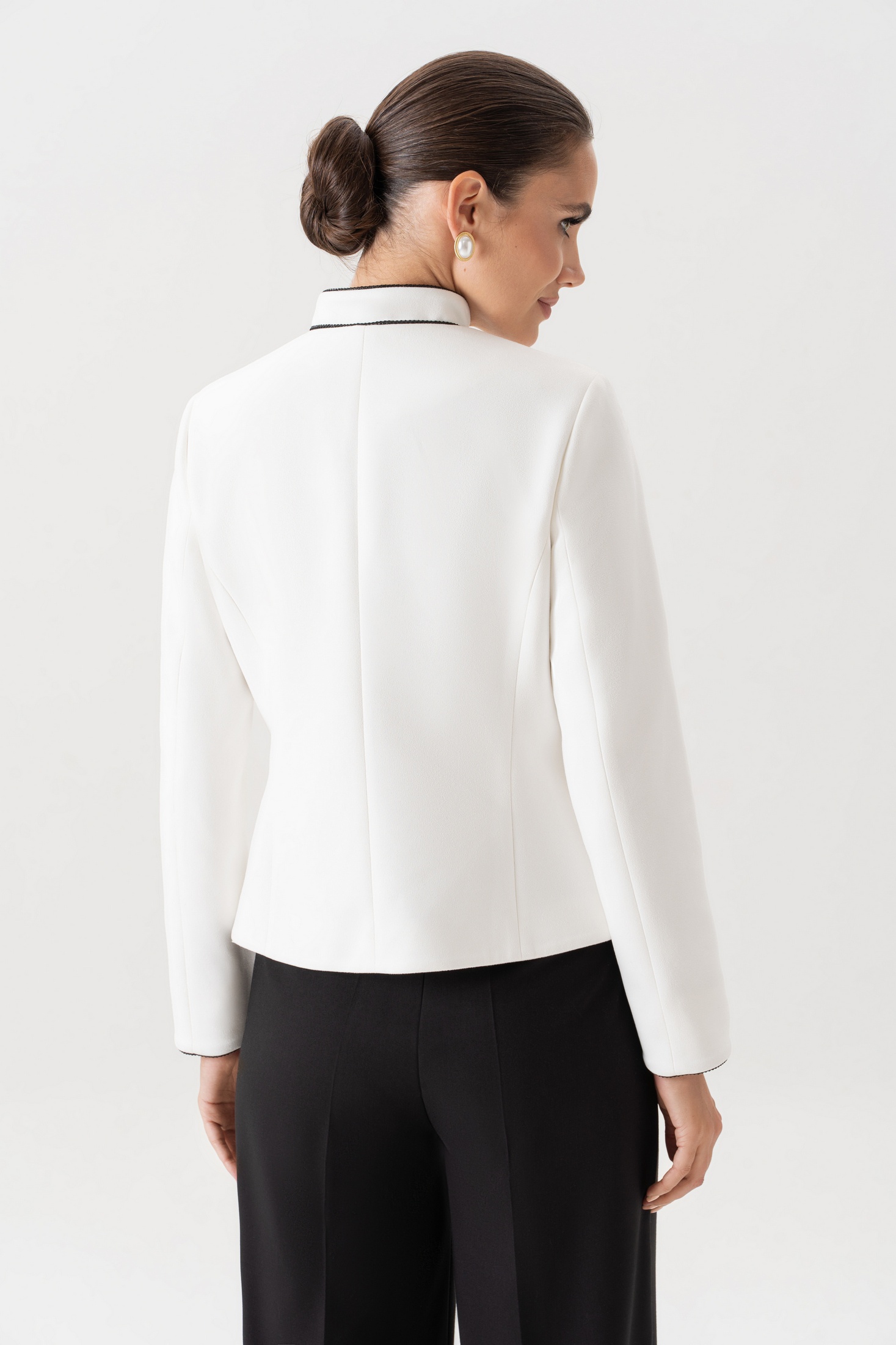 Белый замшевый жакет с вышивкой от URS — это воплощение элегантности и безупречного вкуса. Модель создана для женщин, которые ценят классику, роскошь фактуры и внимание к деталям. Нарядный приталенный жакет выполнен из мягкого замшевого полотна, что придаёт образу благородство и утончённость, сохраняя при этом комфорт и лёгкость движений.