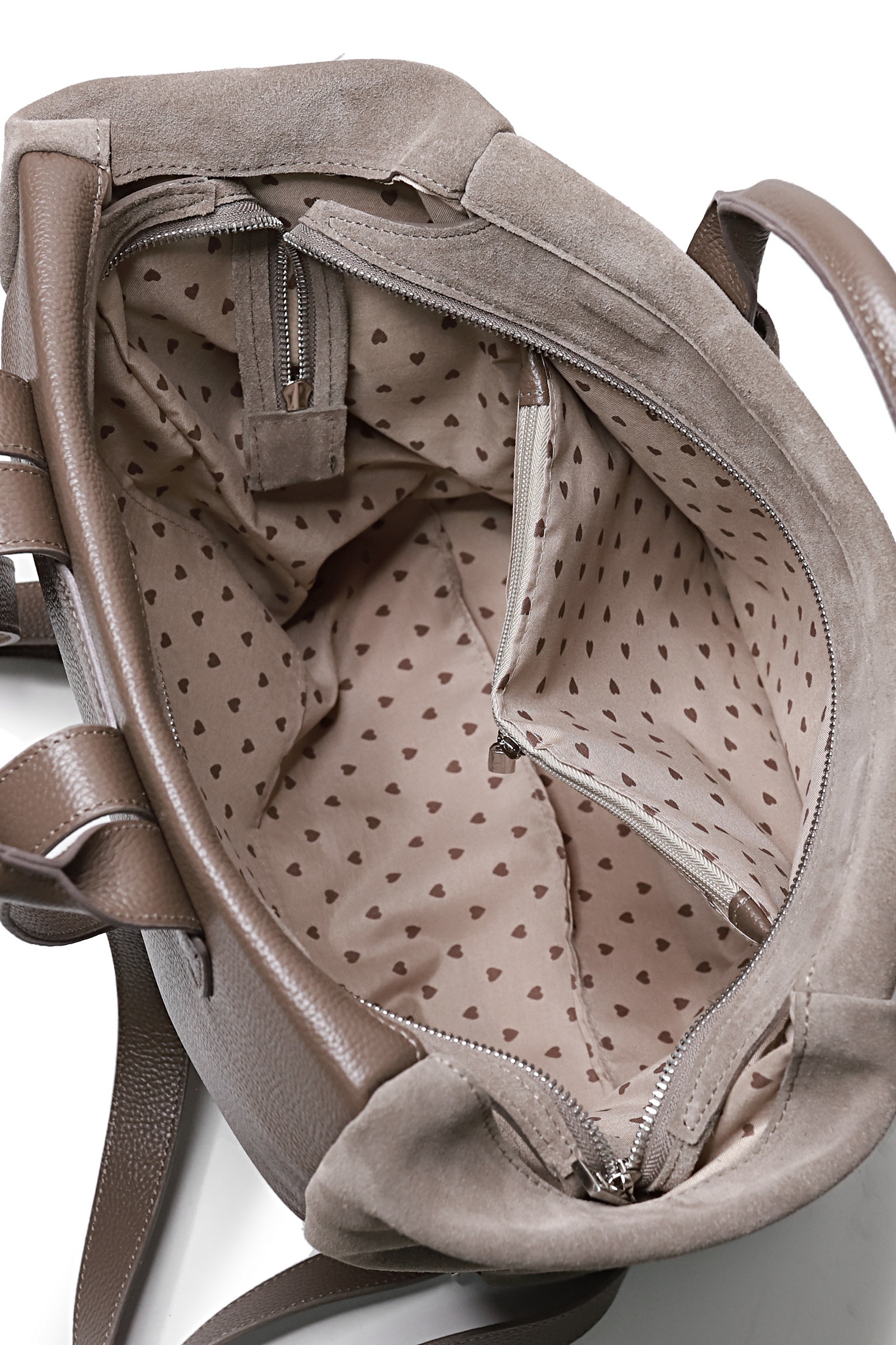 Рюкзак на подкладке, с открытым карманом с украшением и карманом-перегородкой.