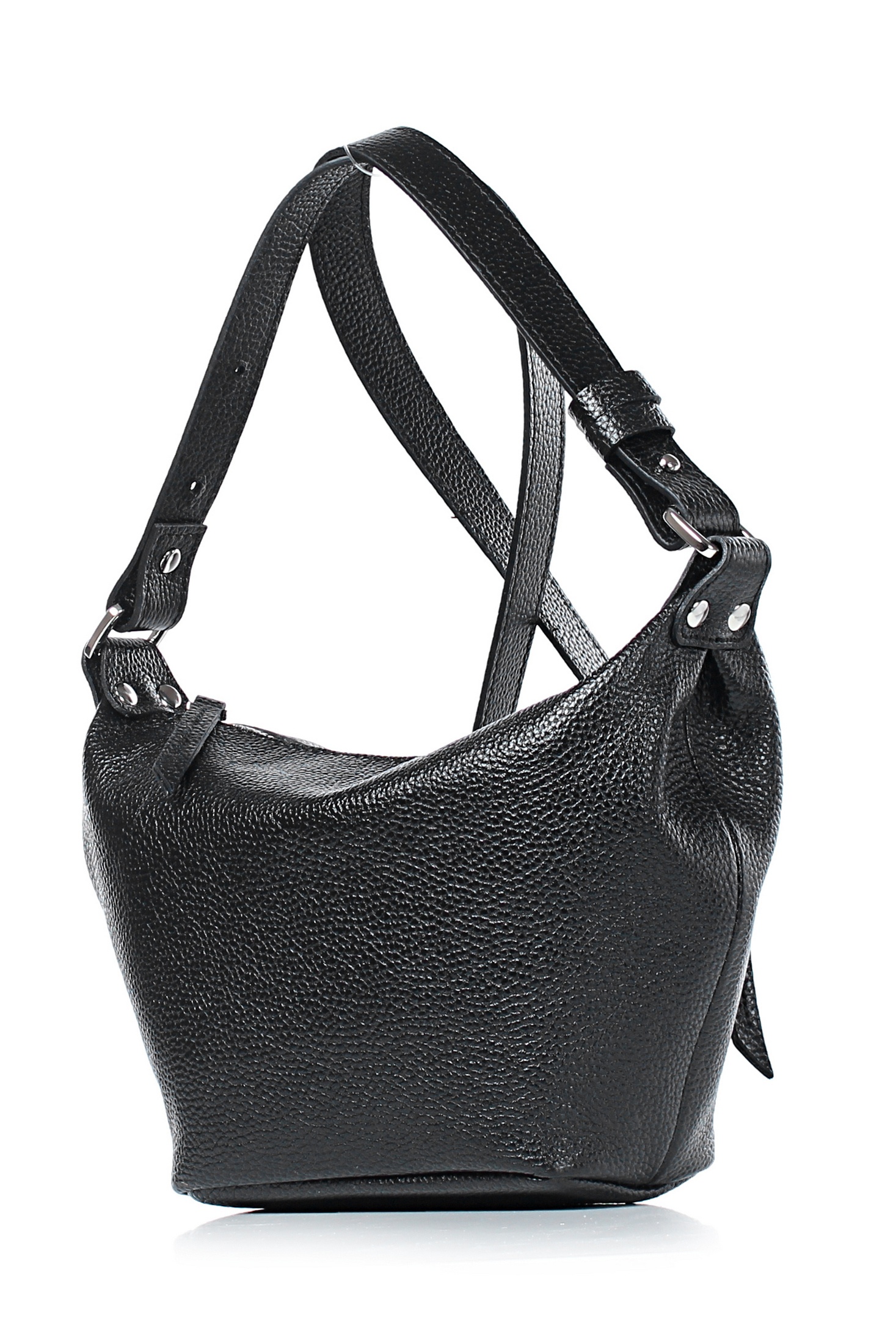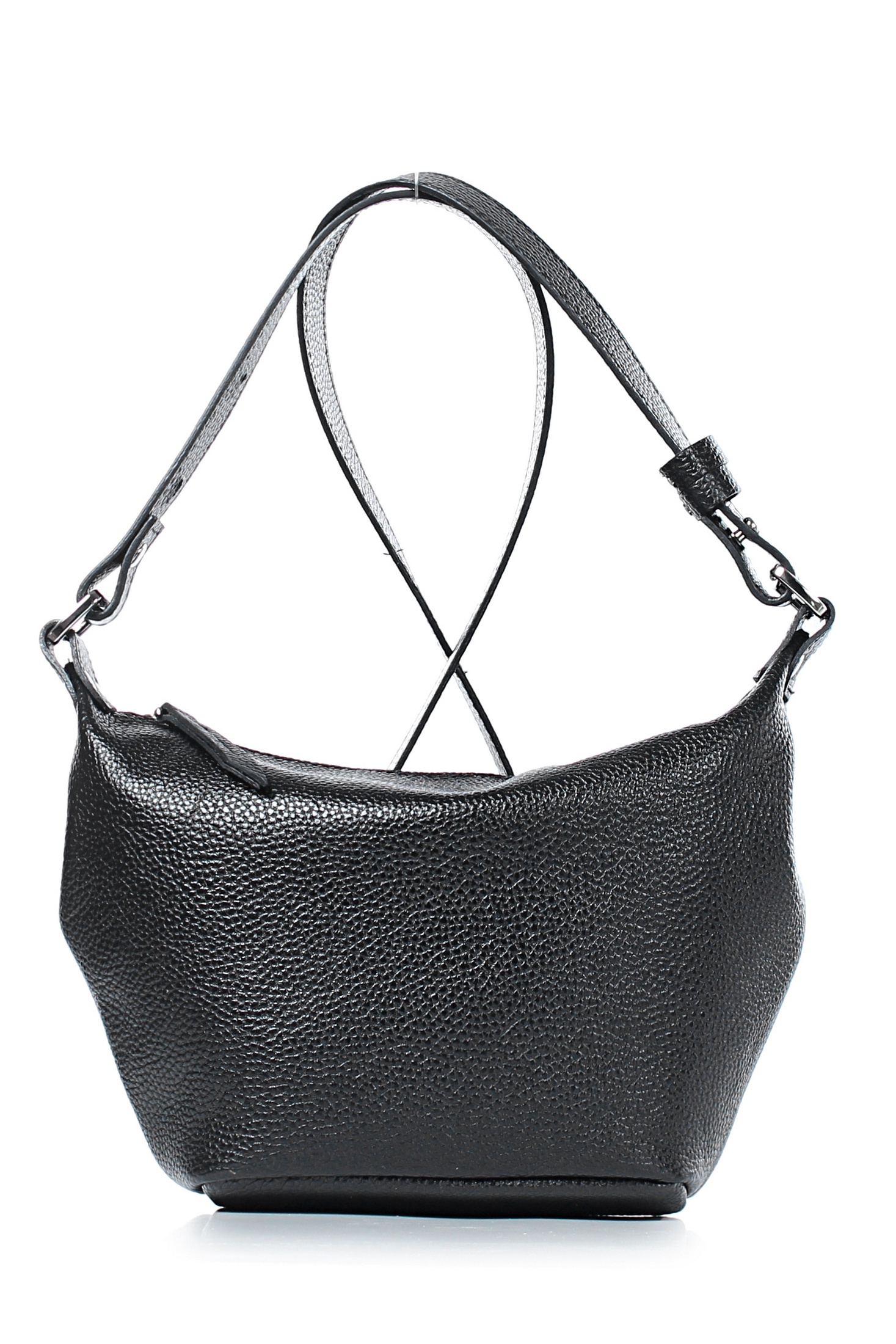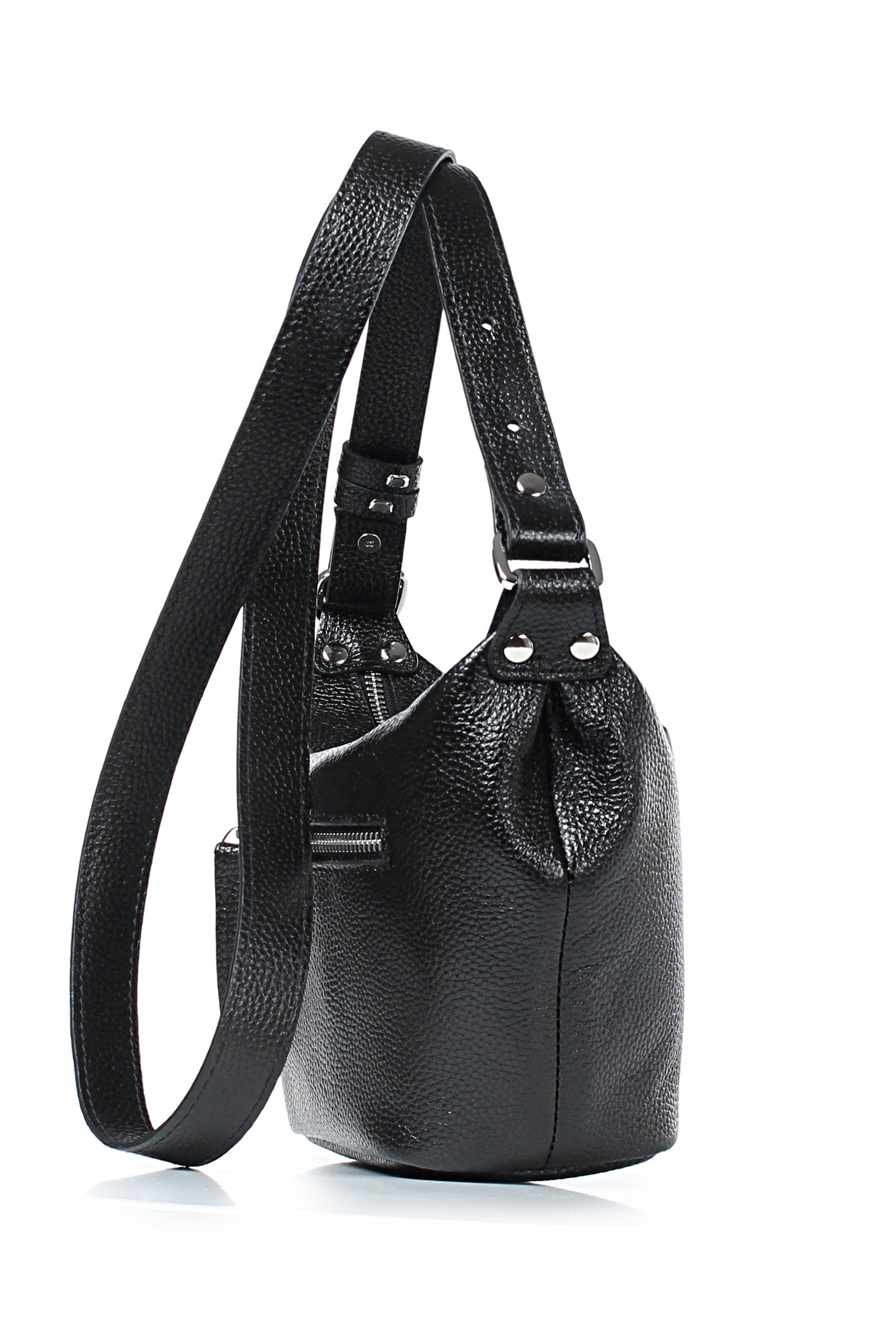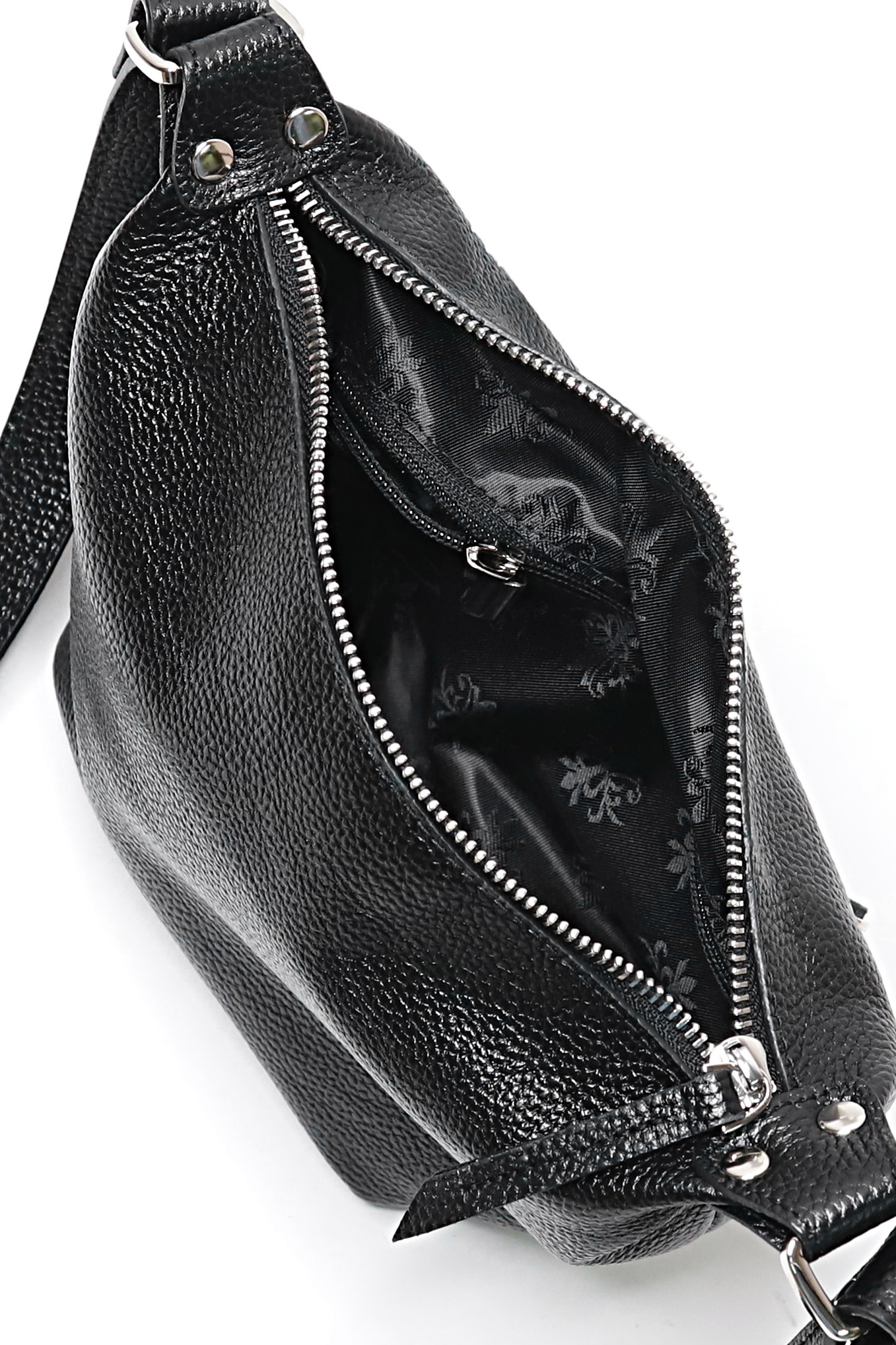Сумка на одно отделение, закрывающееся на застежку-молнию, с одной регулирующейся ручкой-ремнем максимальной длины 620+-10мм, с двумя шлевками на ручке, с двумя поводками на движках, с карманом на задней стенке, закрывающимся на застежку-молнию. Цвет фурнитуры - никель.Сумка на подкладке, с открытым карманом с украшением, с подвесным карманом, закрывающимся на застежку-молнию.