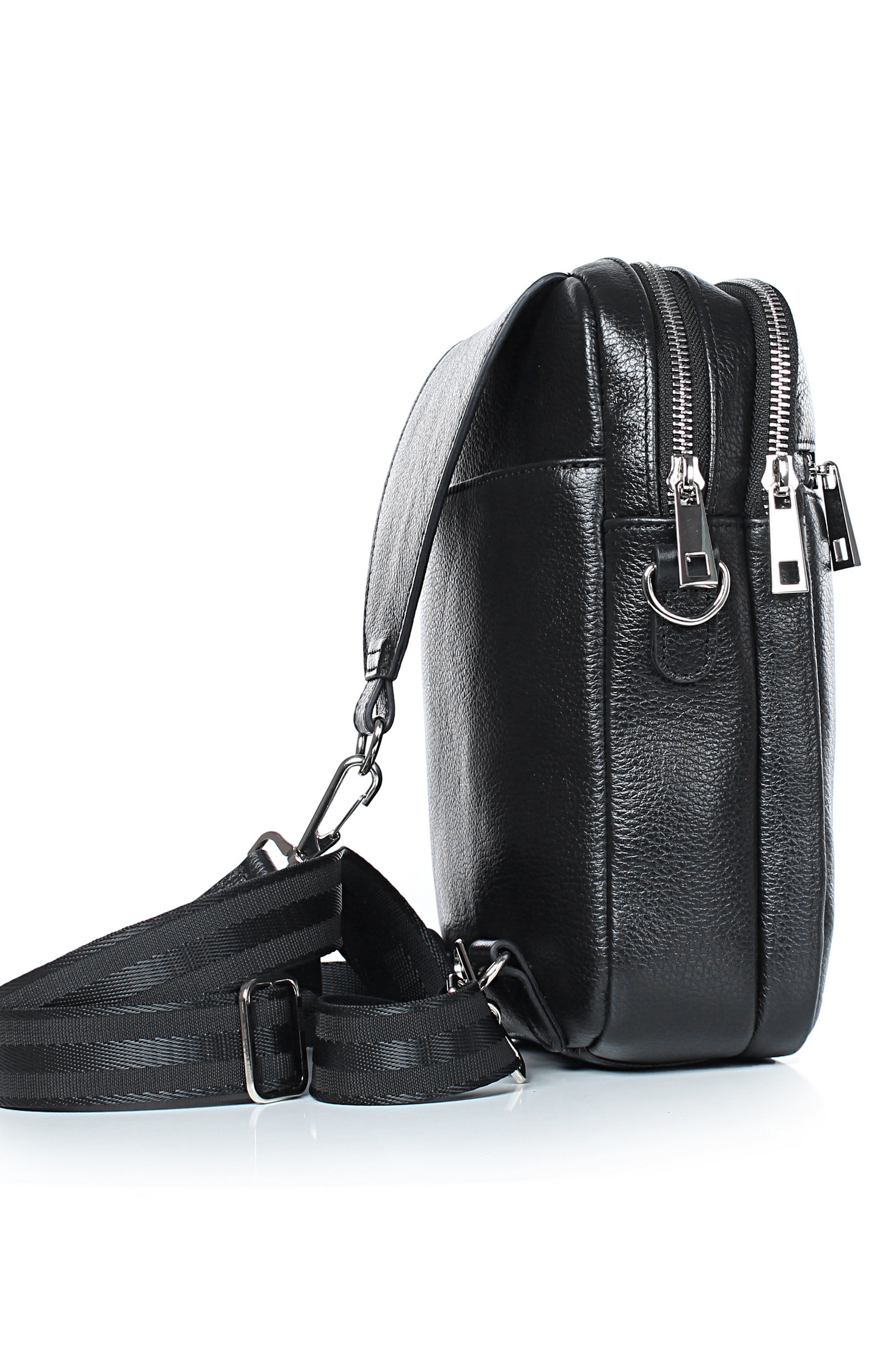 Сумка на два отделения, закрывающиеся на застежку-молнию, с одним регулирующимся плечевым ремнем максимальной длины 1535+-10 мм, с карманом на передней стенке, закрывающимся на застежку-молнию, с открытым карманом на задней стенке, с боковыми держателями ручки-ремня. Цвет фурнитуры - никель. Сумка на подкладке, с подвесным карманом, закрывающимся на застежку-молнию, с открытым карманом, с окантовкой внутренних швов.