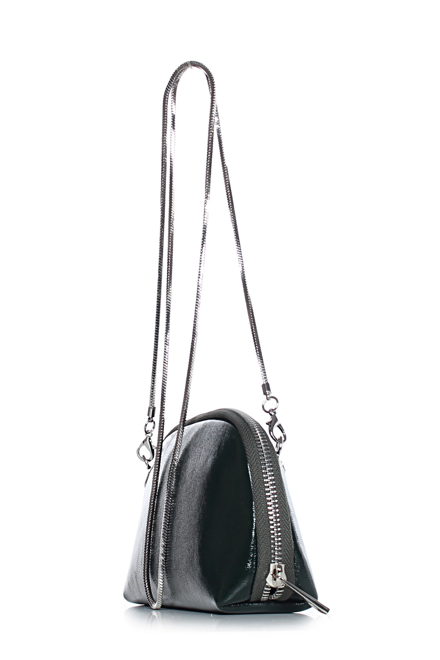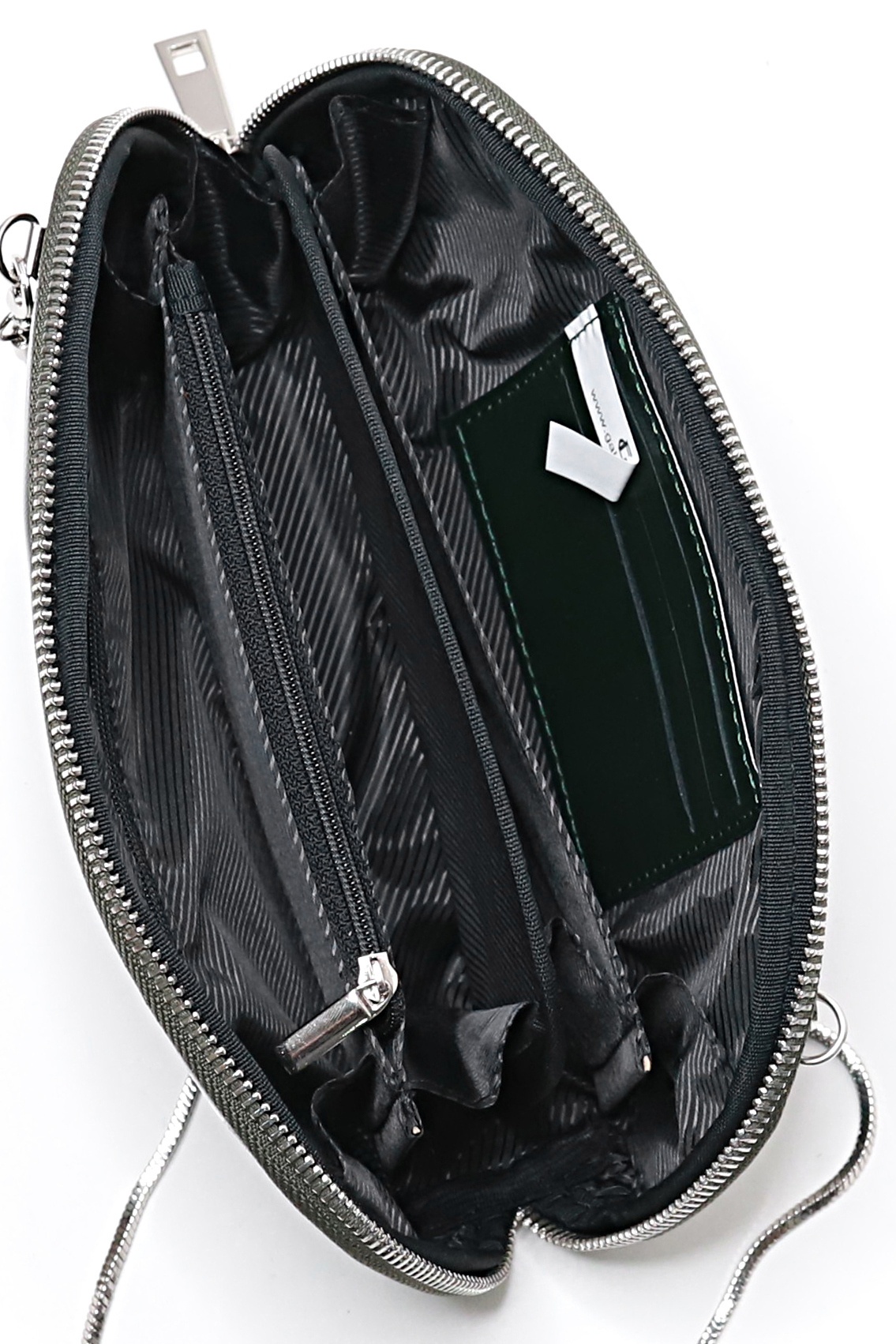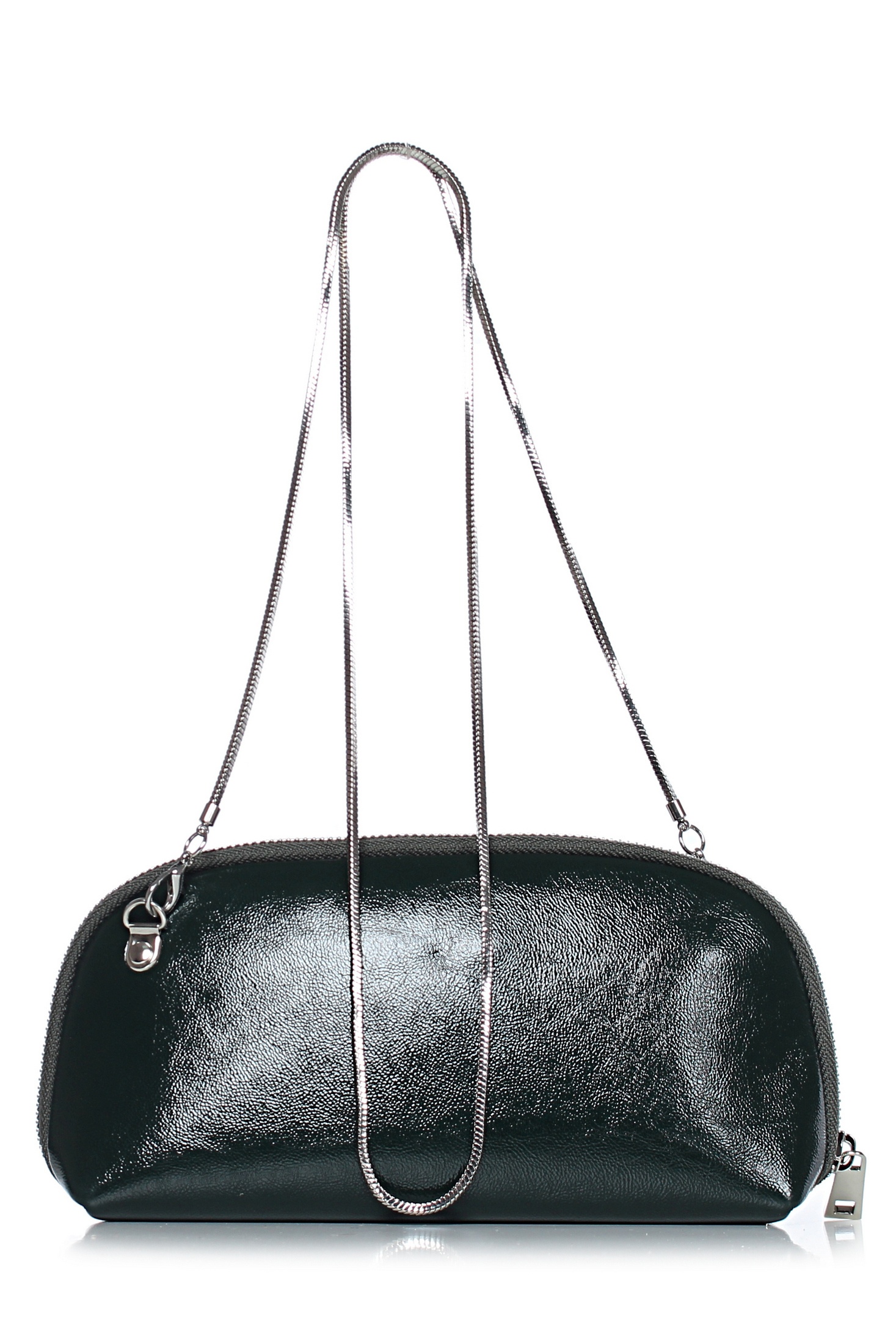 Клатч на одно отделение, закрывающееся на застежку-молнию. Цвет фурнитуры - никель. Клатч на подкладке, с отделениями для пластиковых карт, с карманом, закрывающимся на застежку-молнию, с карманом-перегородкой, закрывающимся на застежку-молнию, с окантовкой внутренних швов.