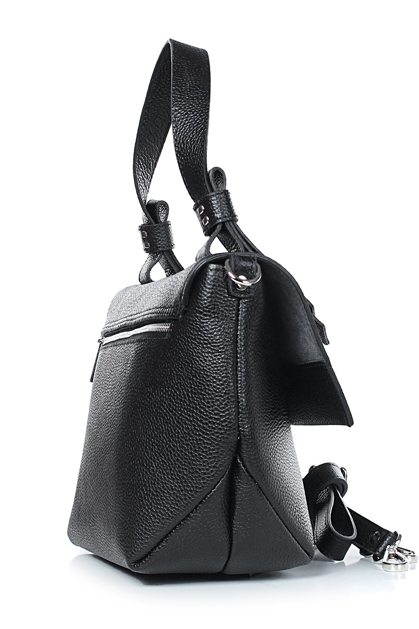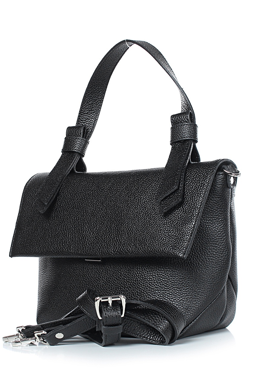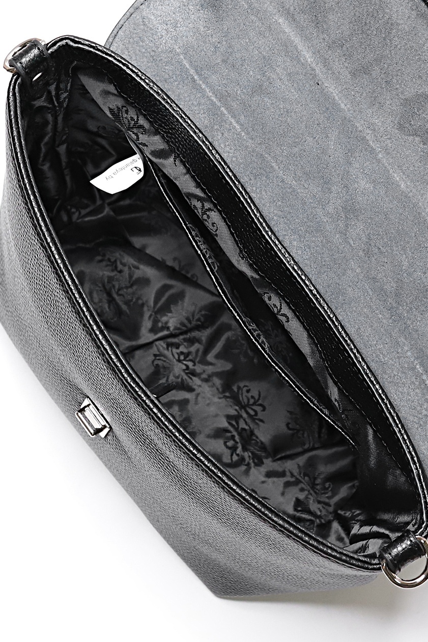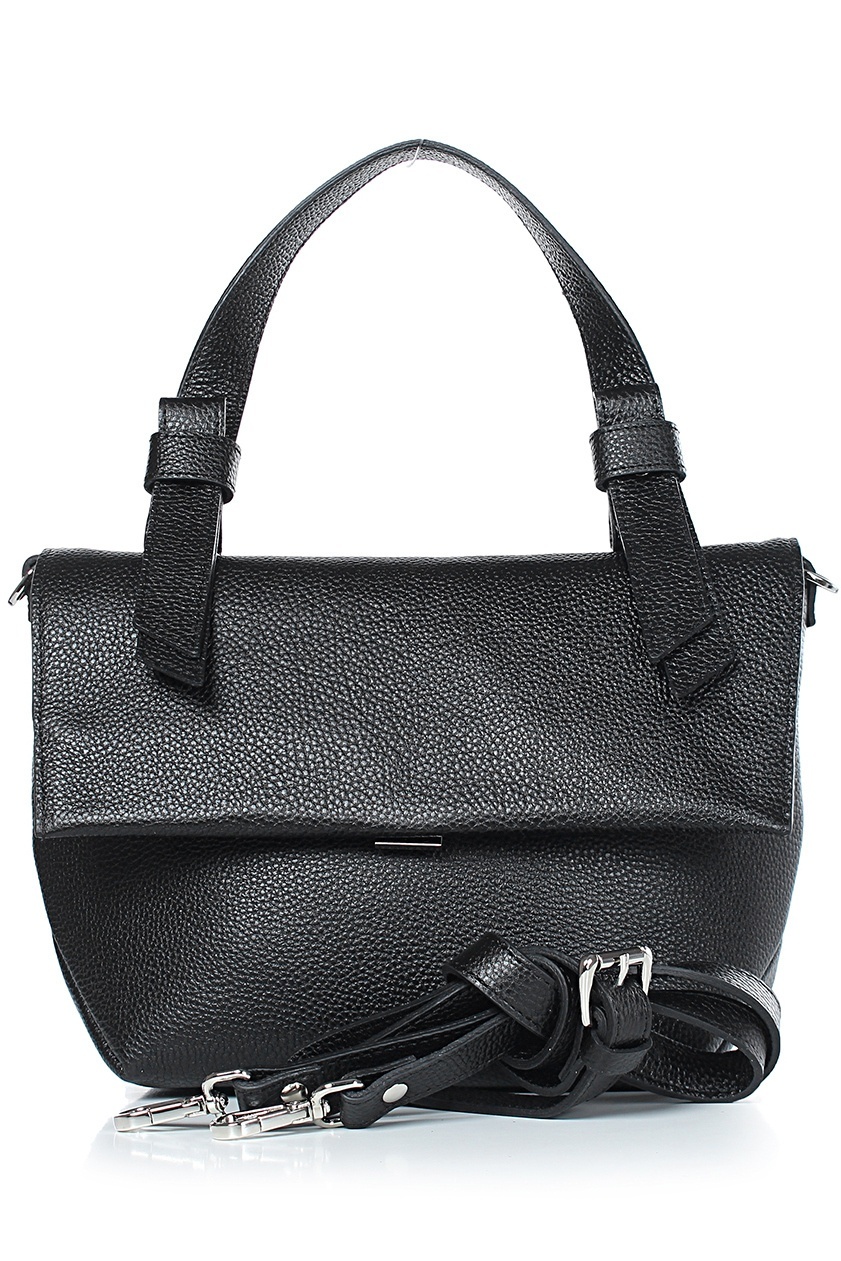 Сумка на одно отделение, закрывающееся клапаном на замок-защелку, с одной короткой ручкой длиной 390+-10мм, со съемной регулирующейся ручкой-ремнем максимальной длины 1280+-10мм, на задней стенке карман, закрывающийся на застежку-молнию. Цвет фурнитуры - никель.