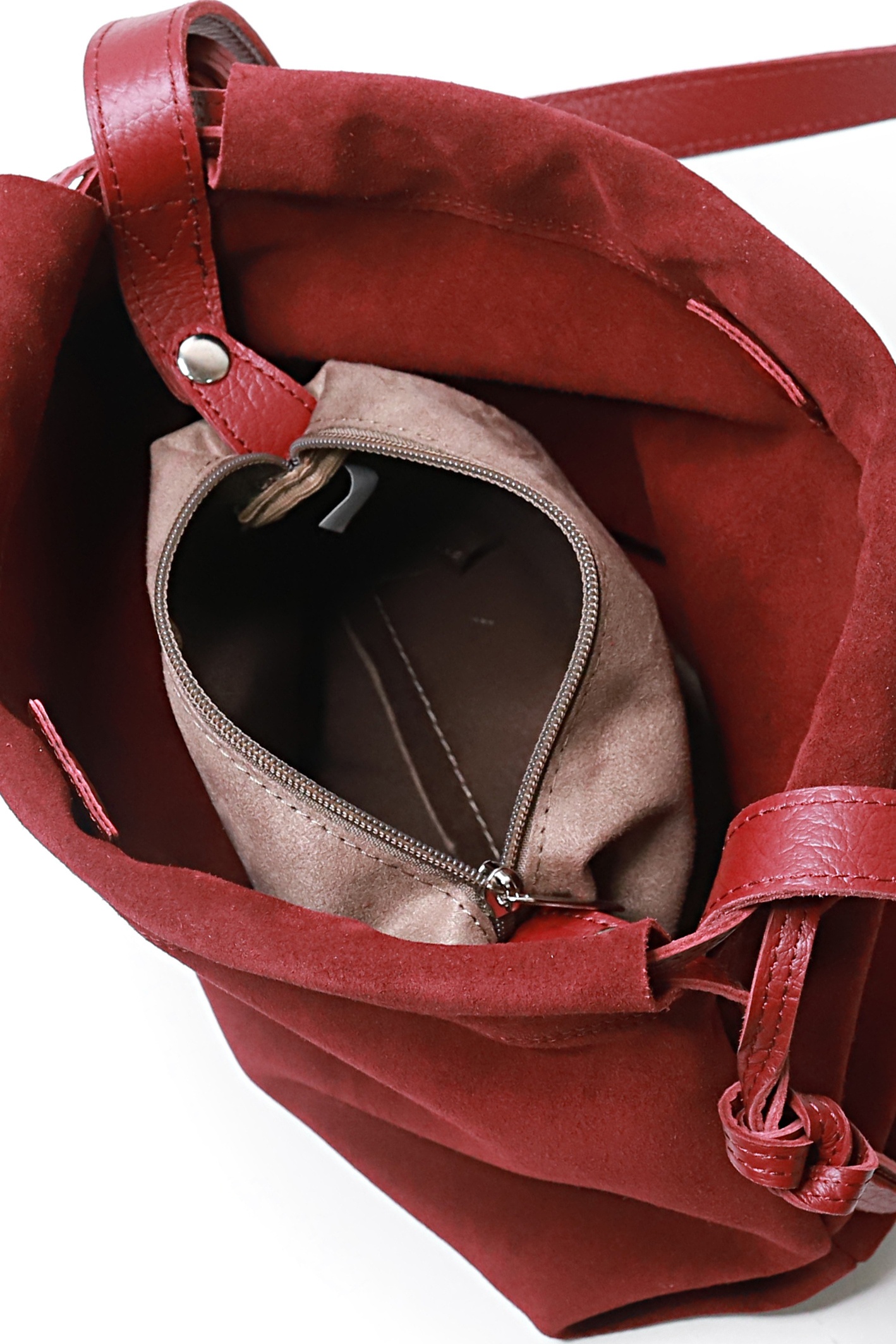 Сумка на одно отделение, закрывающееся малым клапаном на замок-магнитку, с несъемной регулирующейся ручкой-ремнем максимальной длины 1210+-10мм, с продержкой в верхней части стенок, с пуклями на дне, со складками с боковых сторон стенок. Цвет фурнитуры - никель. Сумка без подкладки, с подвесным вкладышем, закрывающимся на застежку-молнию, с окантовкой внутренних швов, вкладыш крепится к сумке на кнопку с помощью держателей.